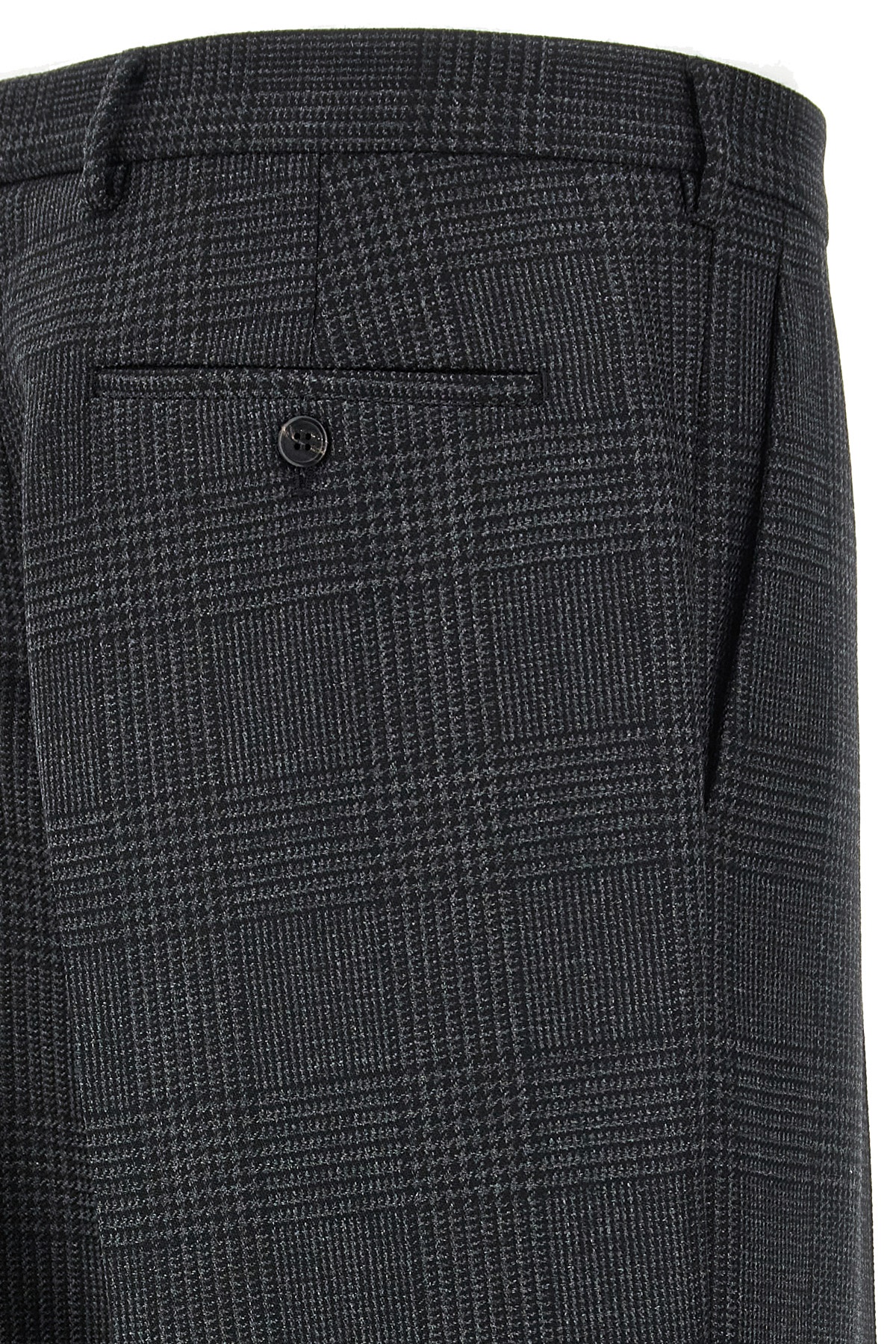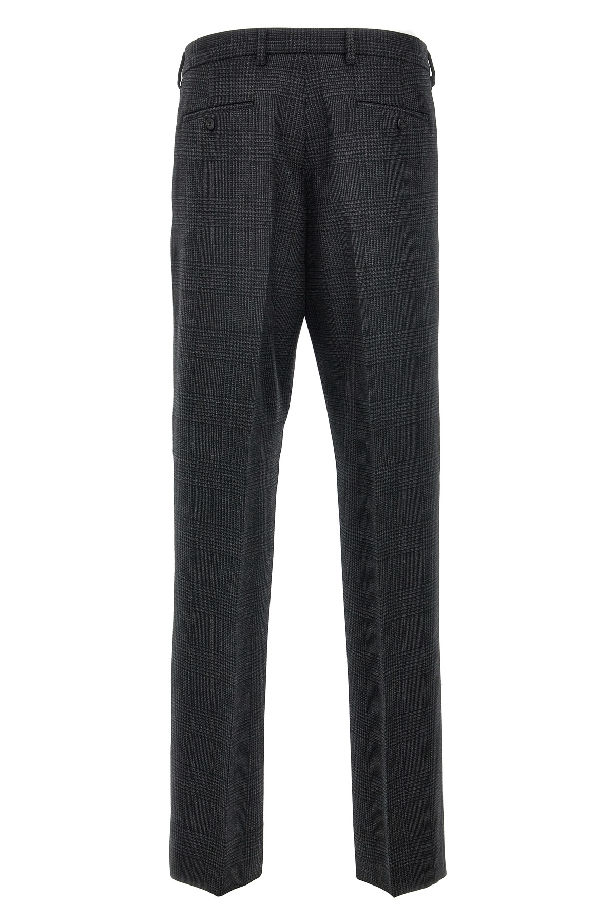 Check wool trousers, hook and button zip closure, pockets, straight leg with pressed pleat.