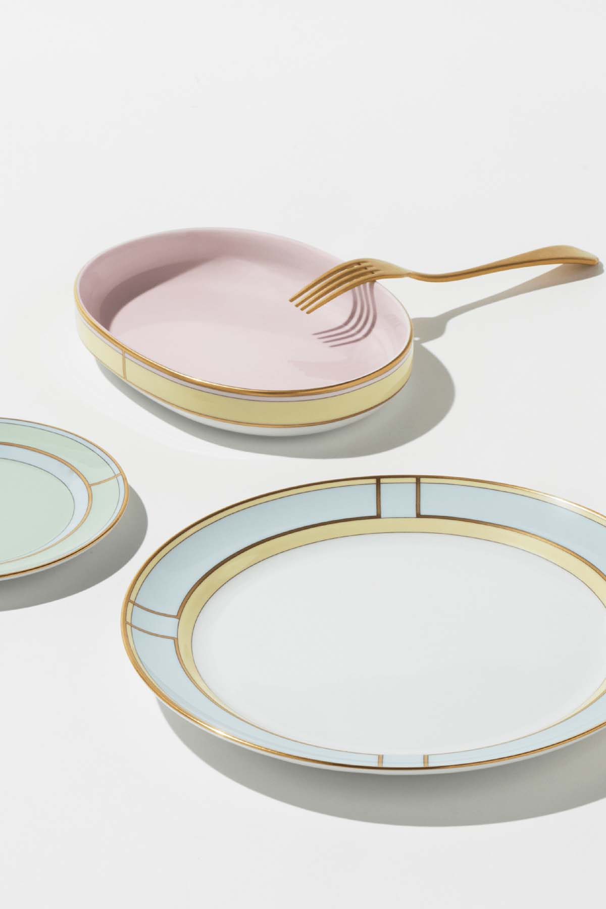 Porcelain raviera with yellow and gold decoration