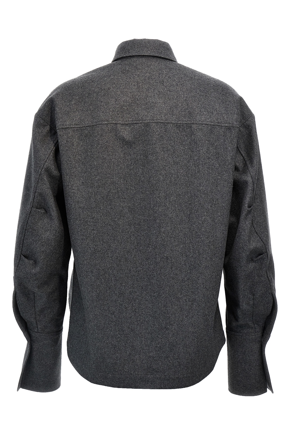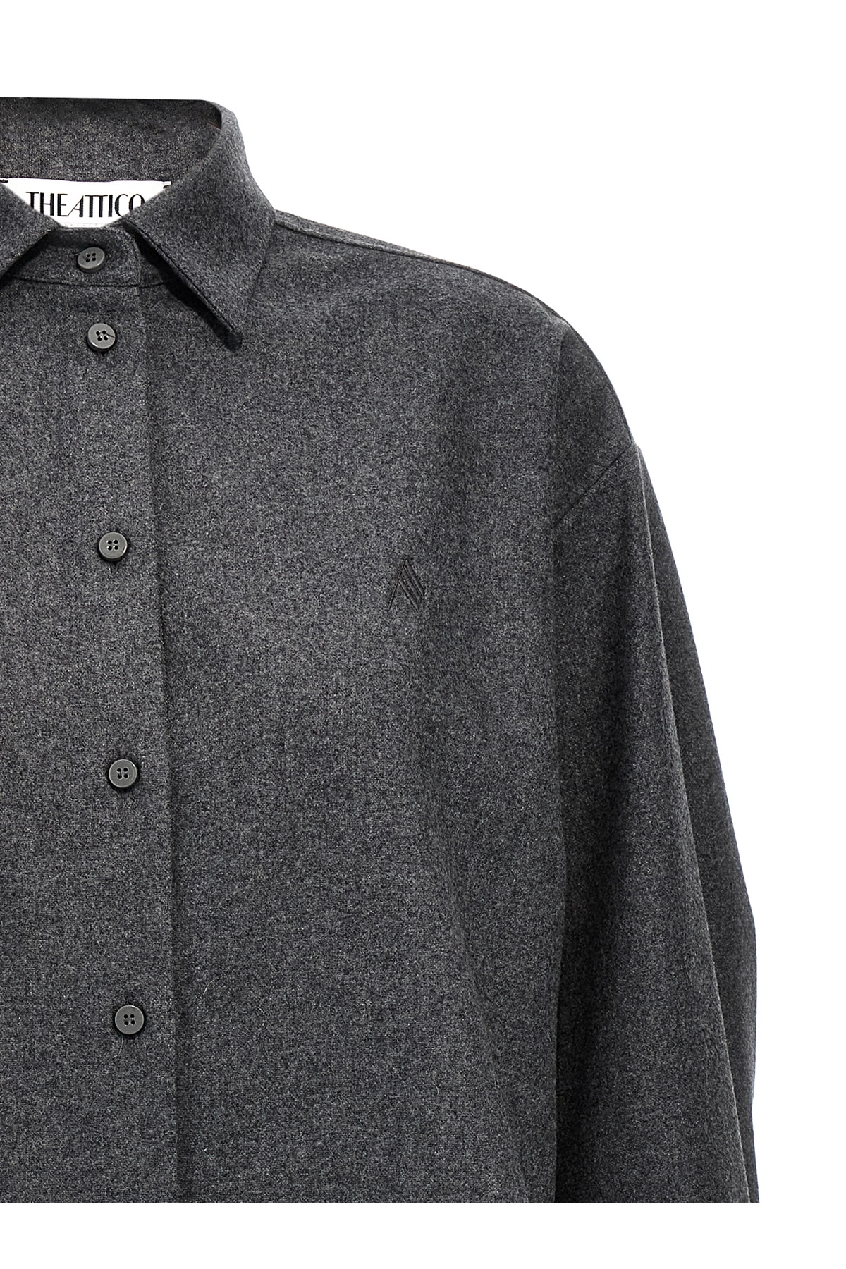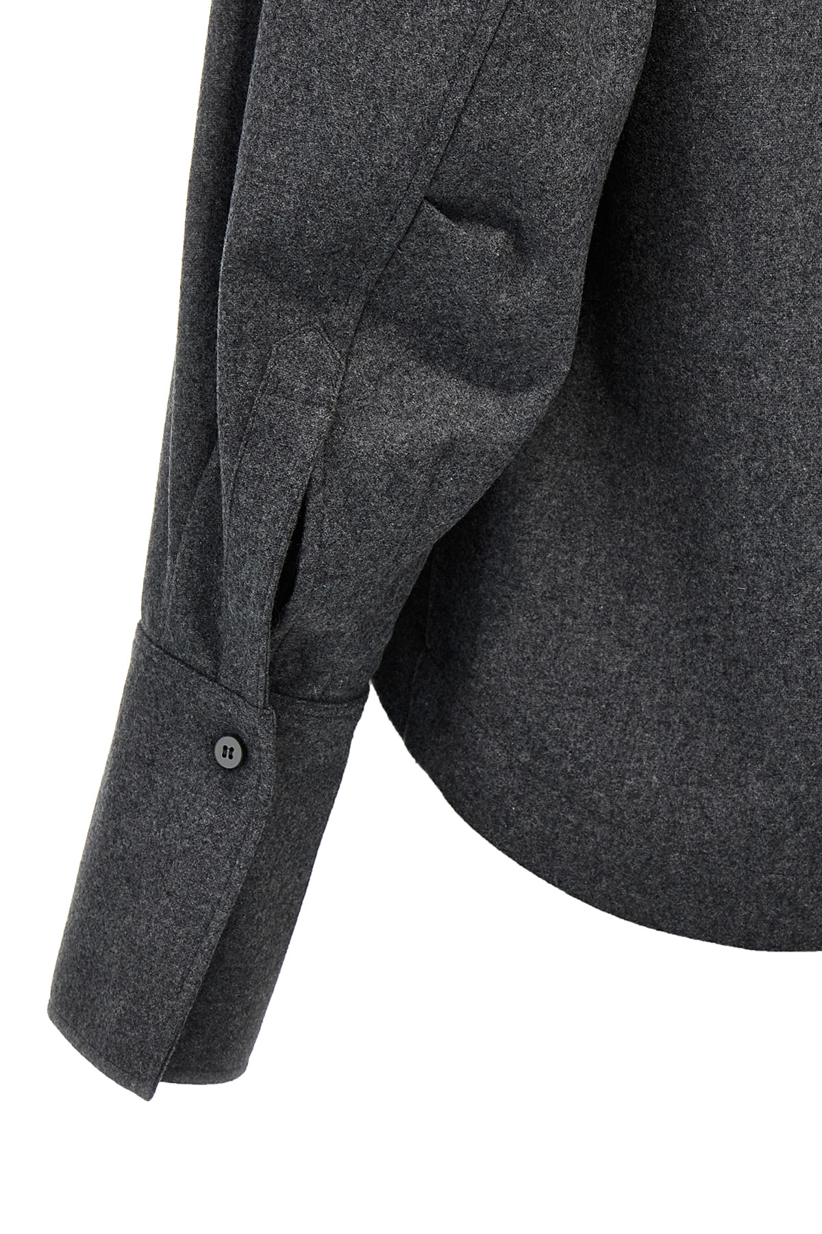 'Eliza' wool blend shirt with front logo embroidery, button closure, long cuffed sleeves, contoured front split.