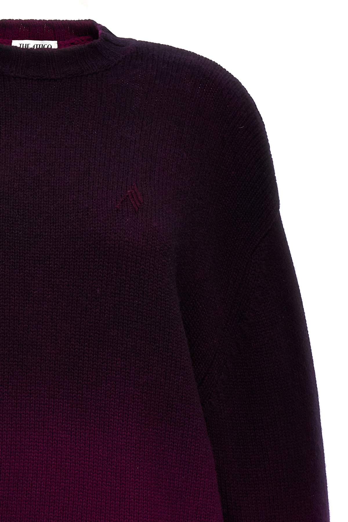 Oversized wool and cashmere blend knit dress with front logo embroidery, crew neck, long sleeves, curved hem.