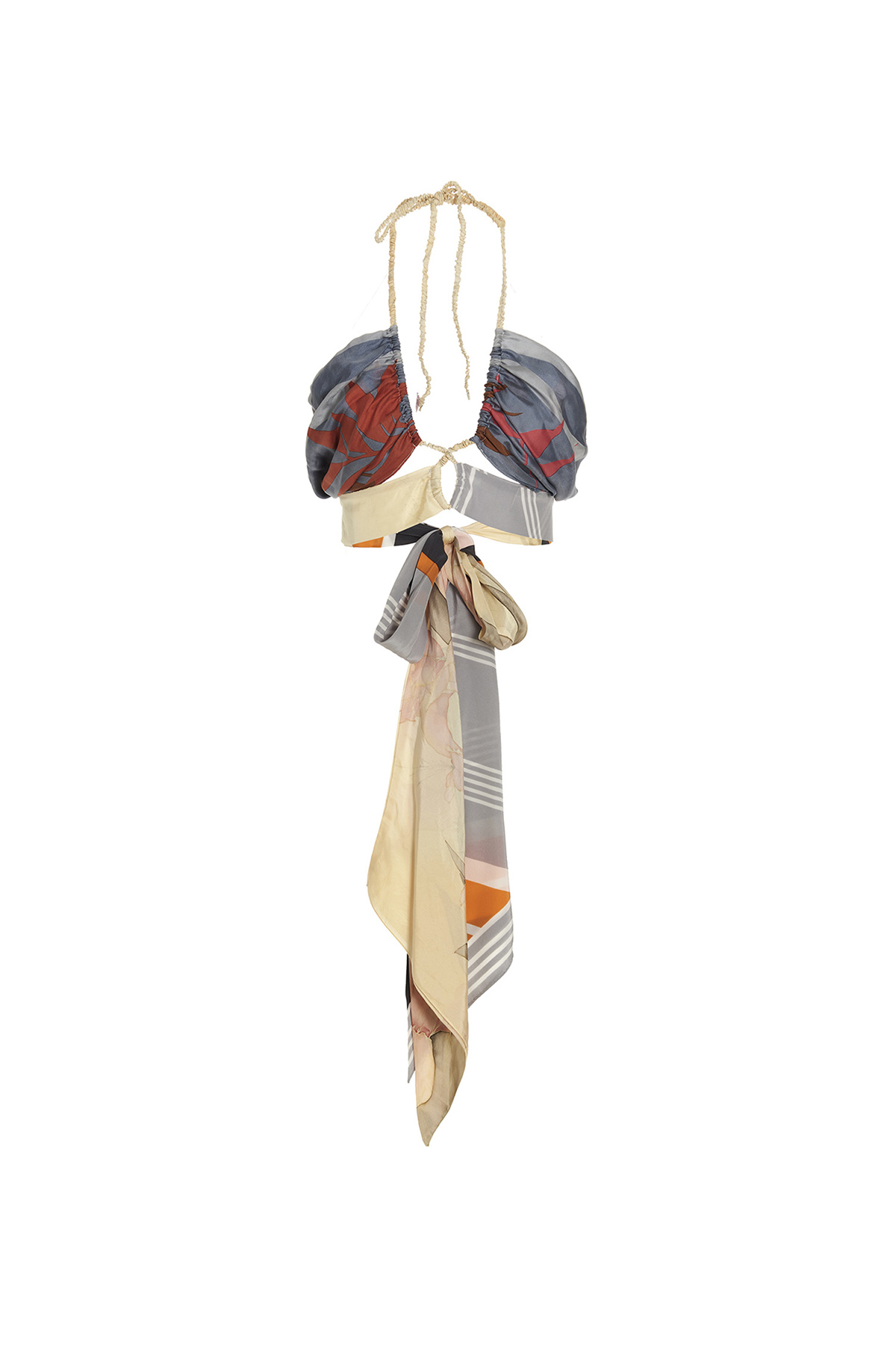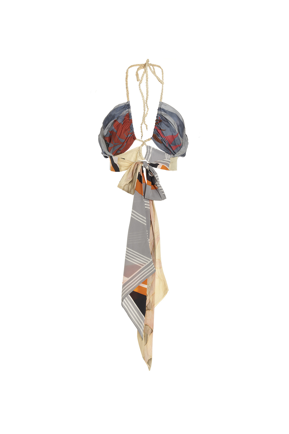 Designer Scarf' multicolor fabric top with thin straps and bow closure. This is a vintage model therefore each size is different and the models differ in colors and prints. Please contact us if you have any preferences on the model.