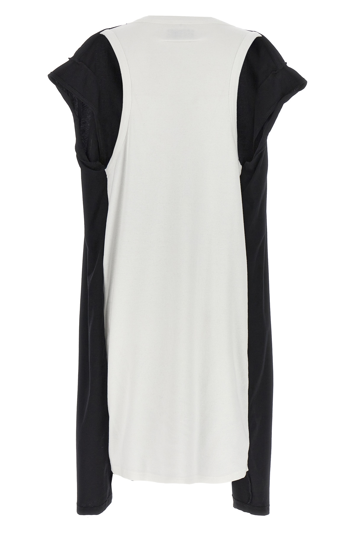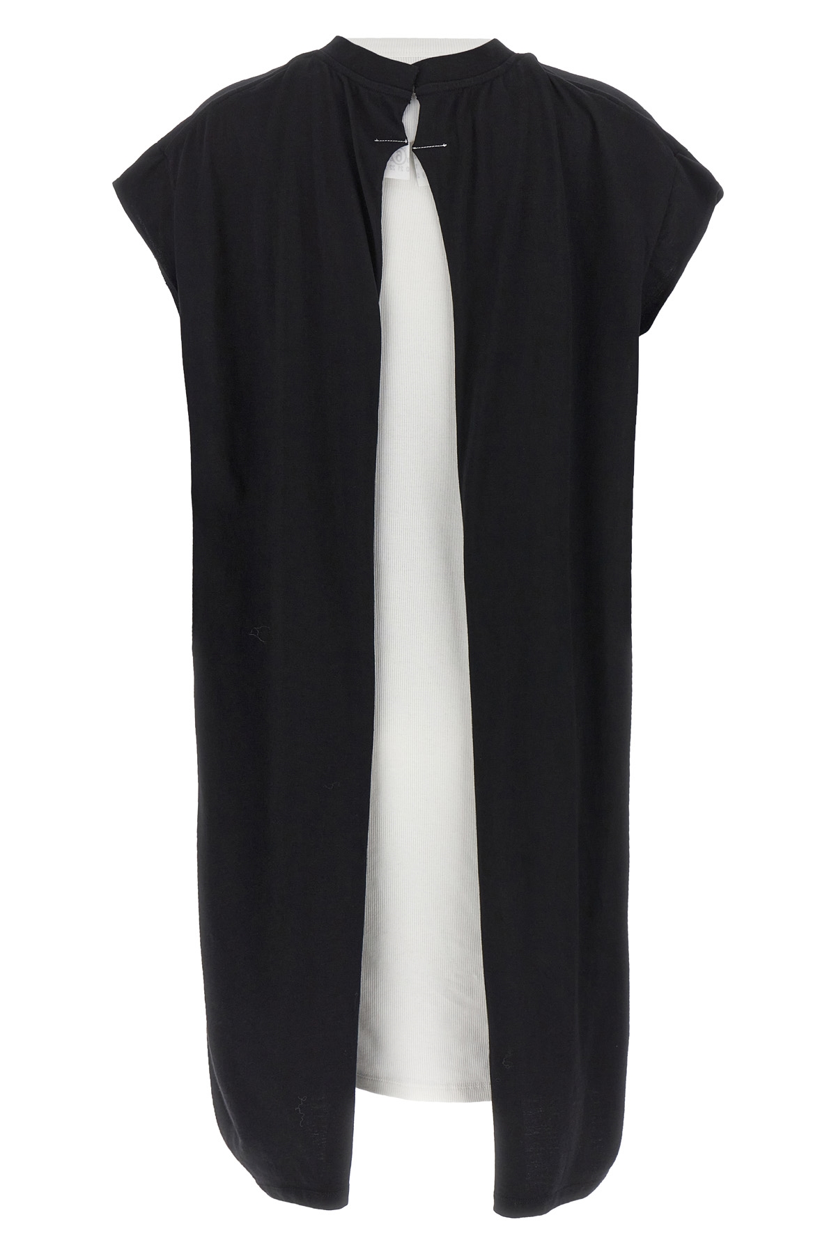 Cotton dress, t-shirt with contrasting back, crew neck, short sleeves.