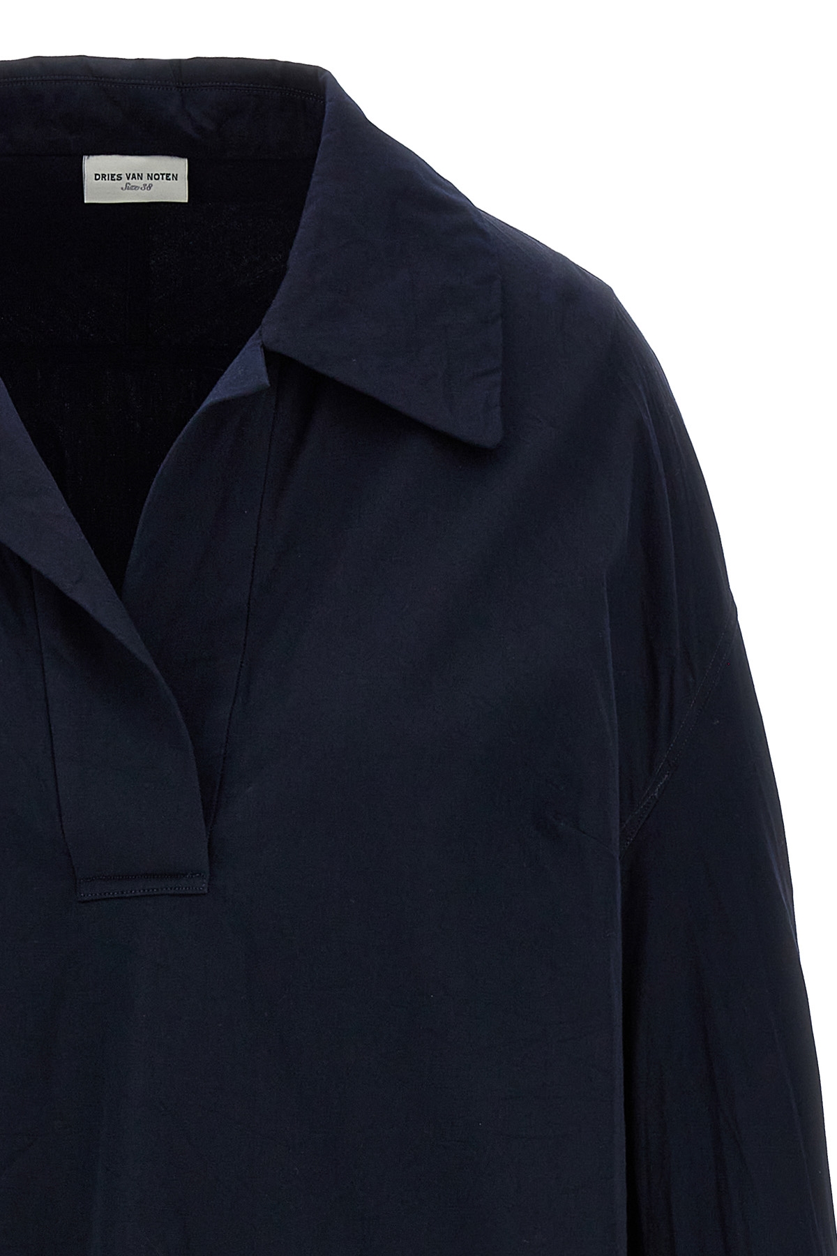 'Camis' cotton blouse with collar and V-neck, long cuffed sleeves.