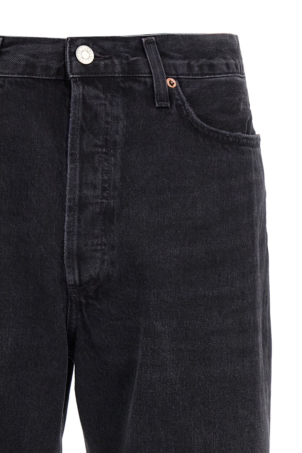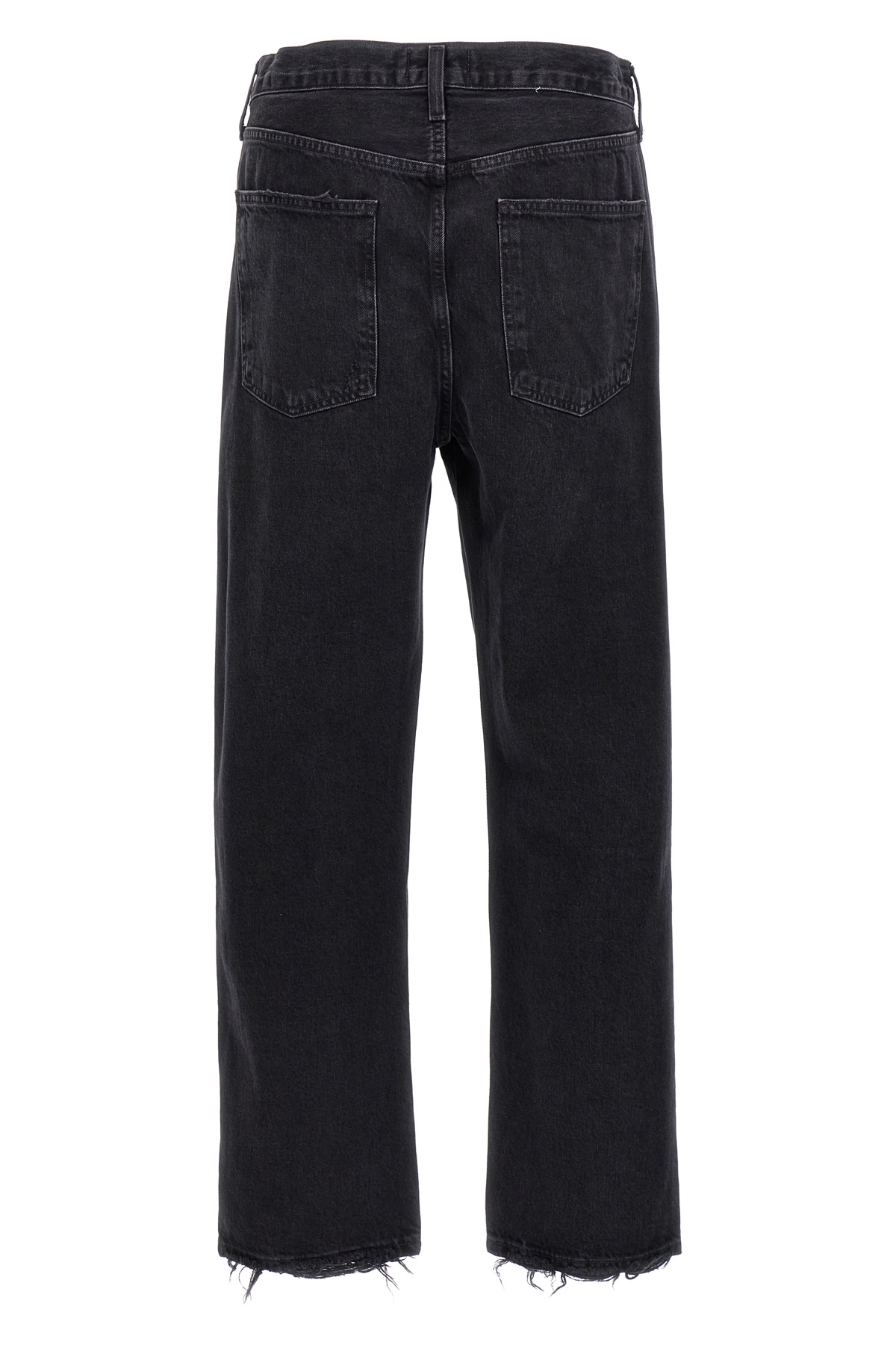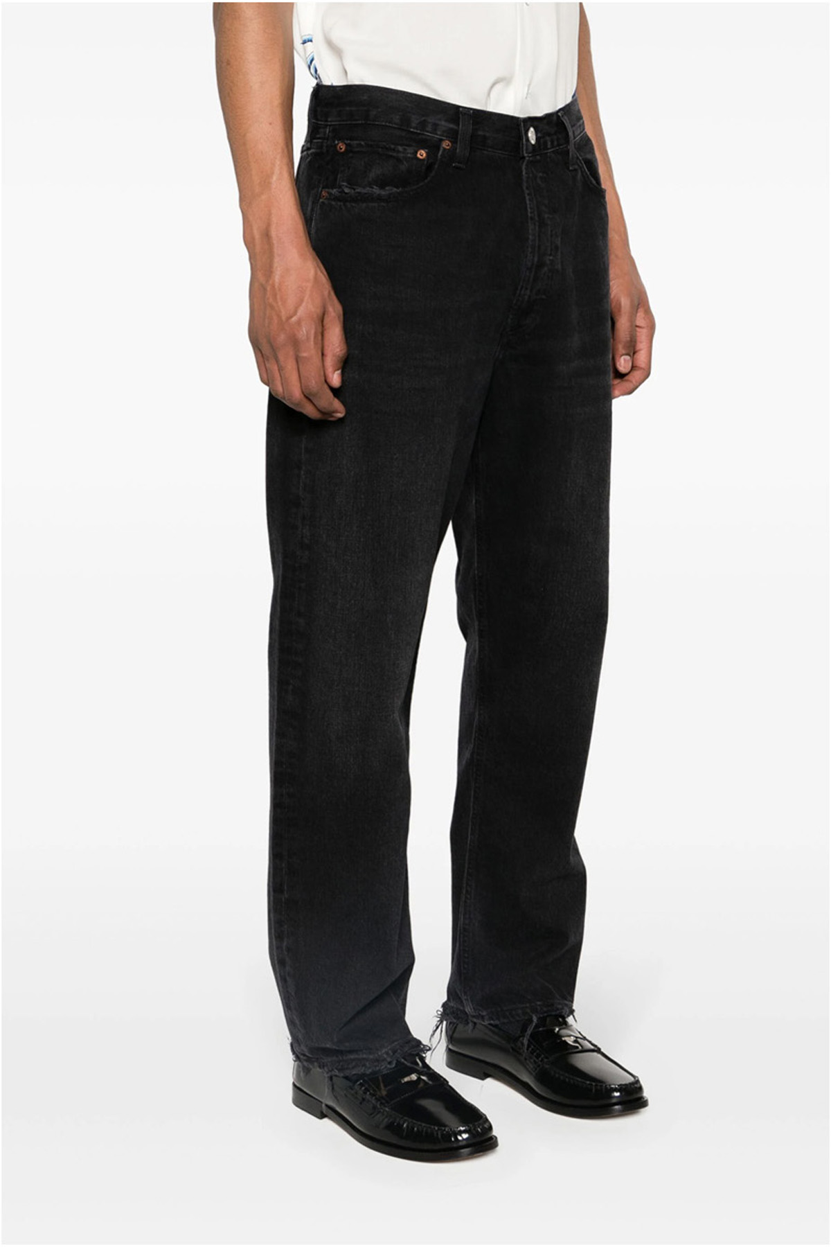 '90's' cotton denim jeans with used-effect details, button closure, five pockets, mid-rise model. SUSTAINABLE: This product is made of organic cotton.