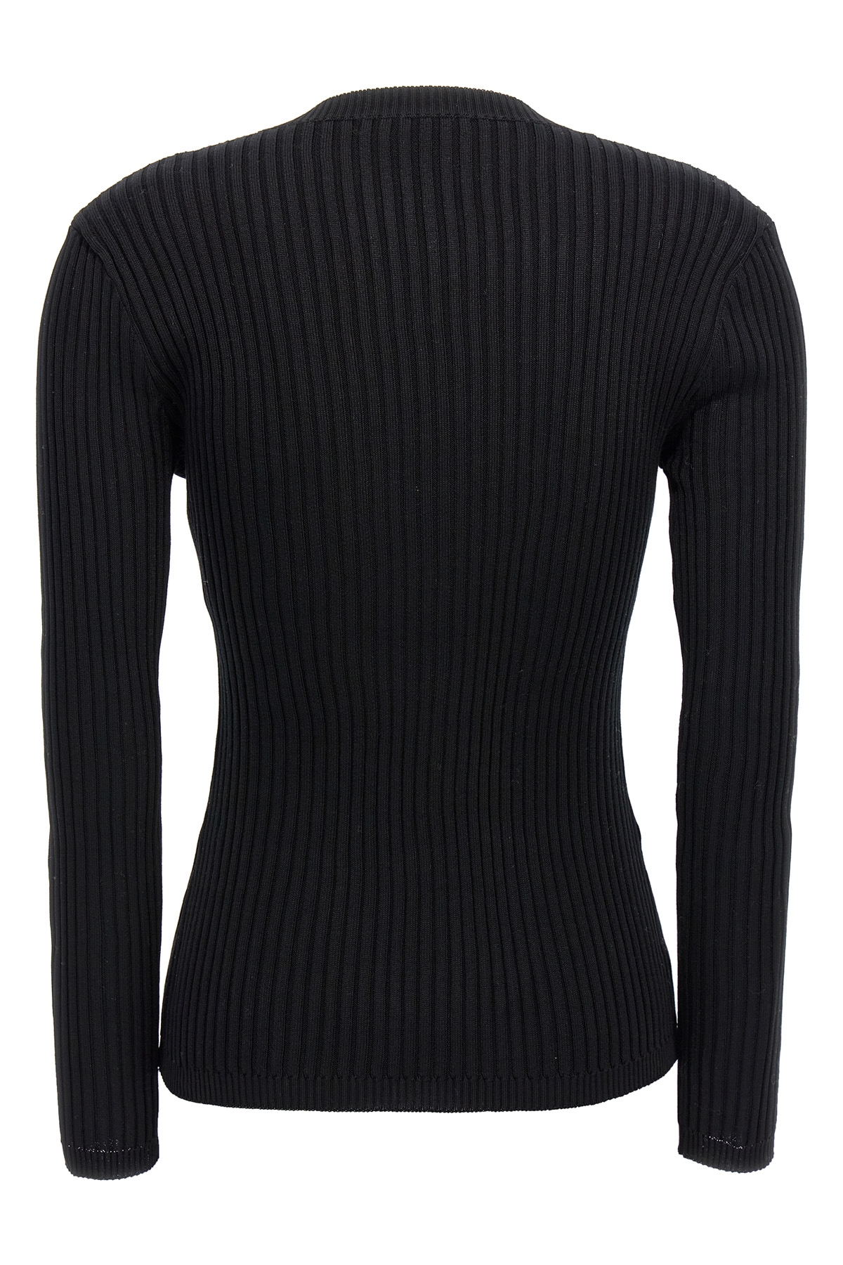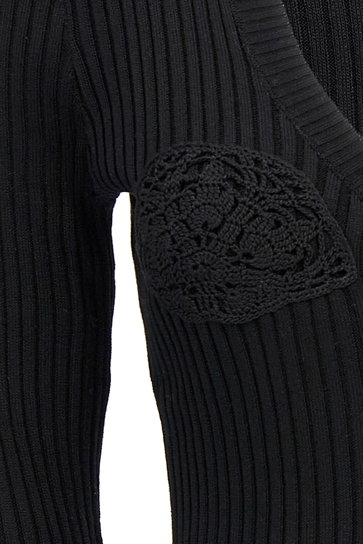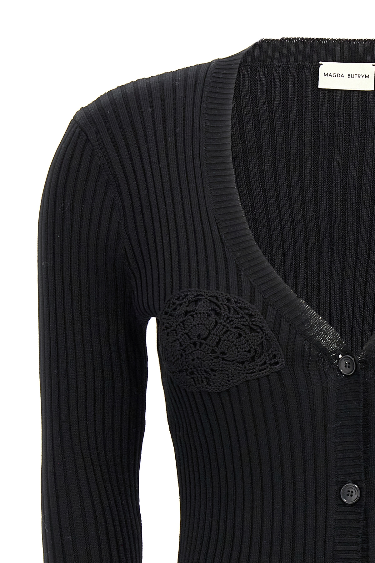 '08' ribbed cotton cardigan with front macrame detail, button closure, long sleeves.