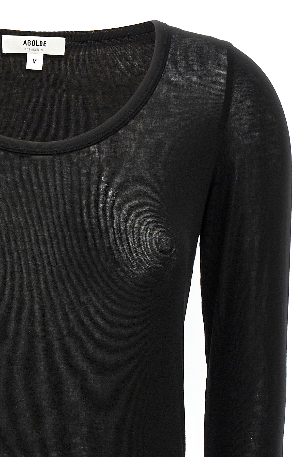 'Corey' stretch lyocell sweater with round neckline, long sleeves.