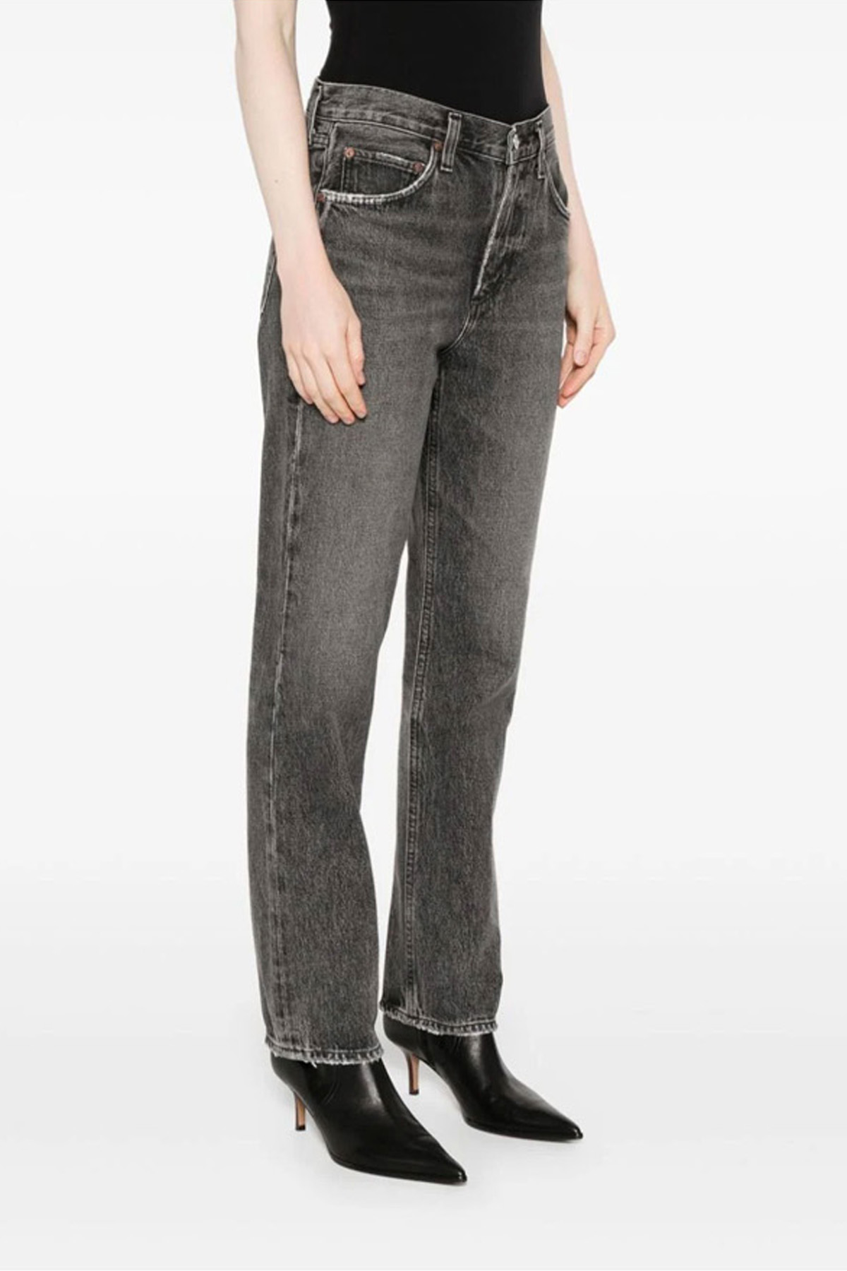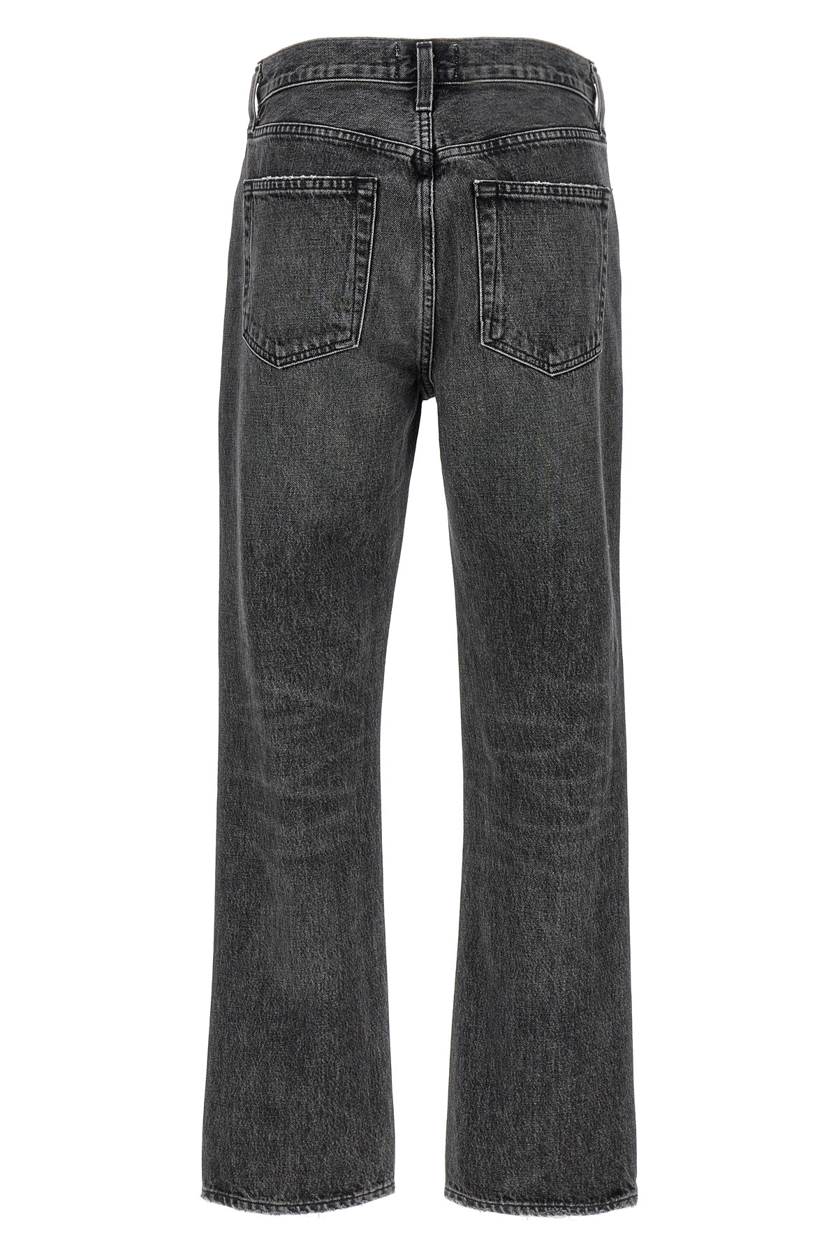 'Valen' cotton denim jeans with used-effect details, zip and button closure, five pockets, mid-rise model with straight leg. SUSTAINABLE: This product is made of regenerated cotton.