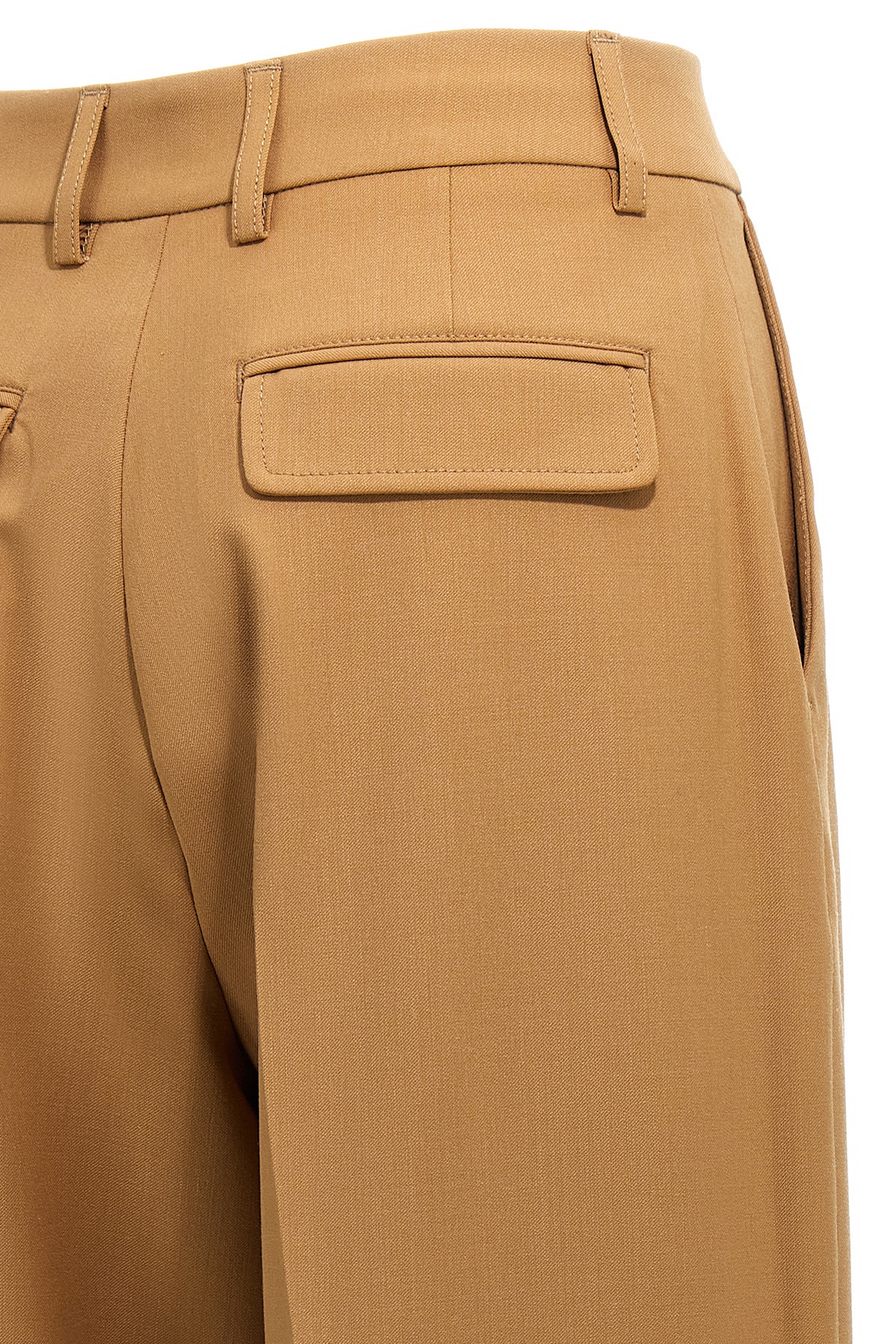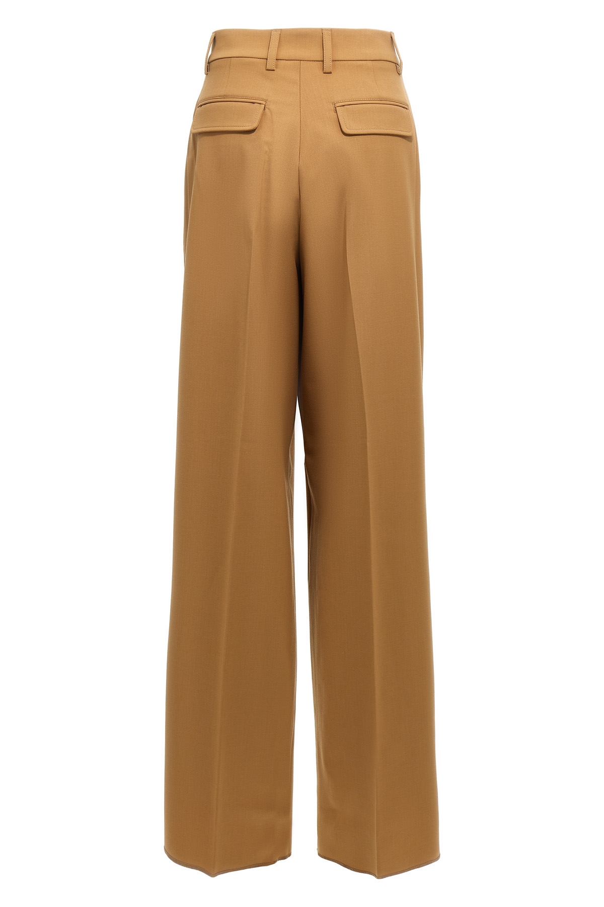 'Axel' wool blend pants, hook and button zip closure, pockets, wide leg with pin tucks and stretched pleat.