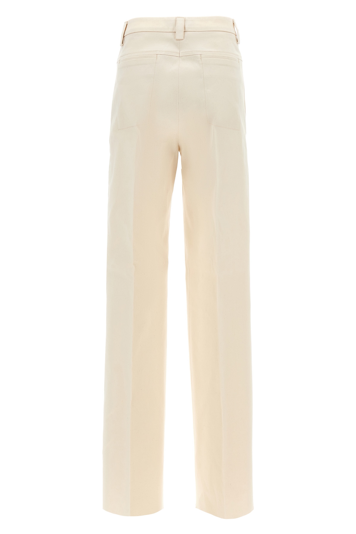 'Alek' cotton canvas pants, hook and button zip closure, wide leg with stretched pleat.
