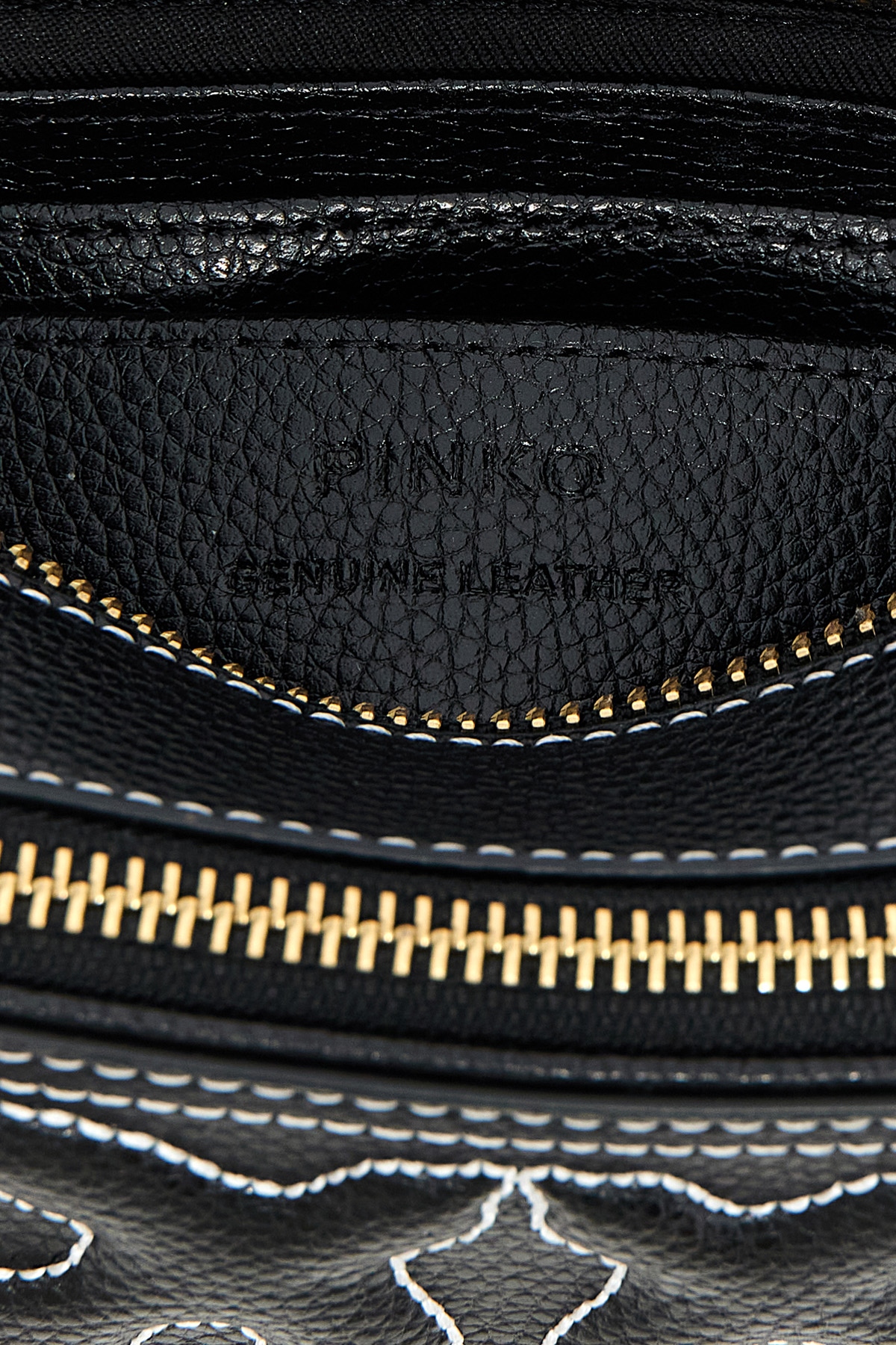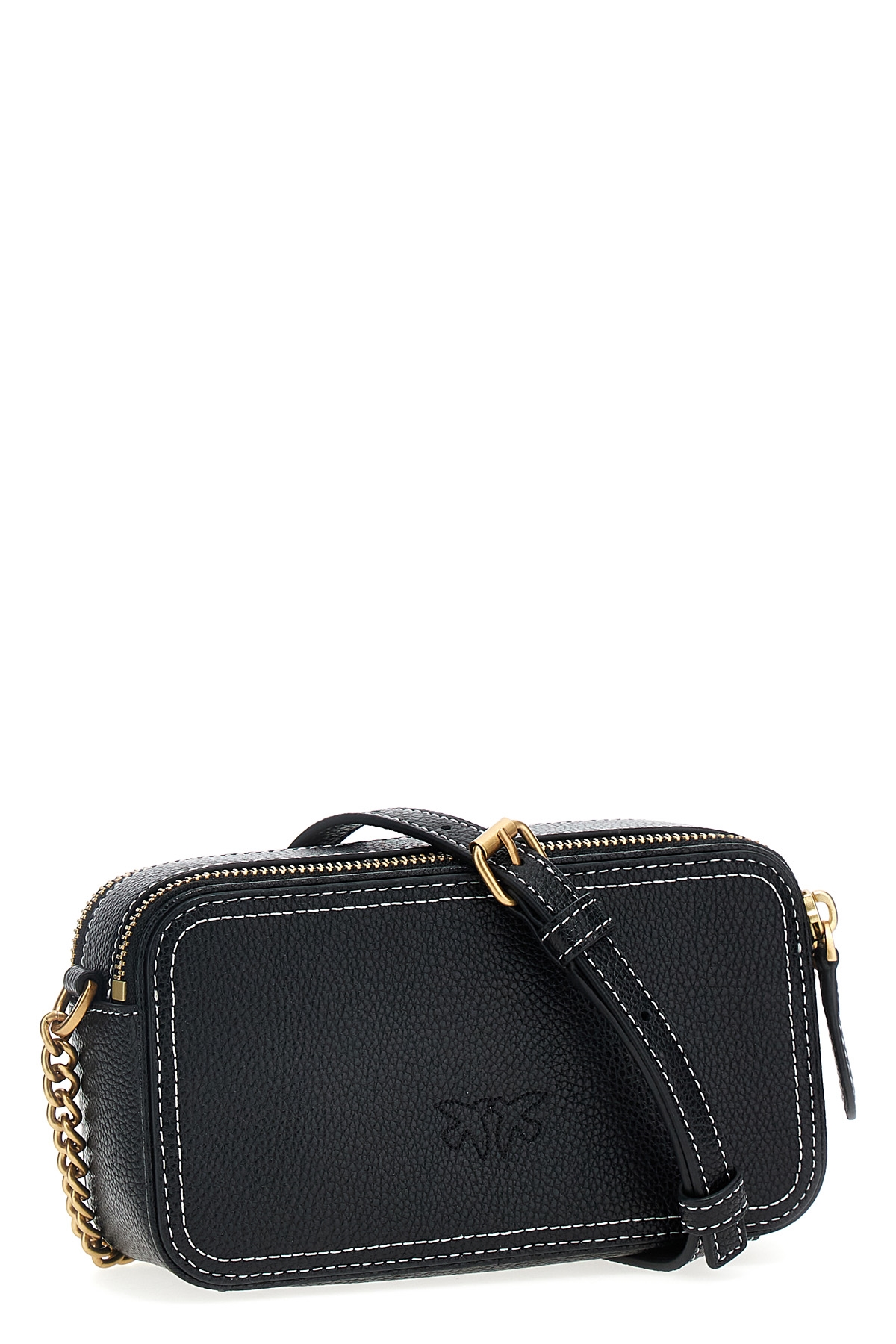 'Carrie Camera Case' drummed leather crossbody bag, zip closure, front logo, leather shoulder strap and adjustable chain.