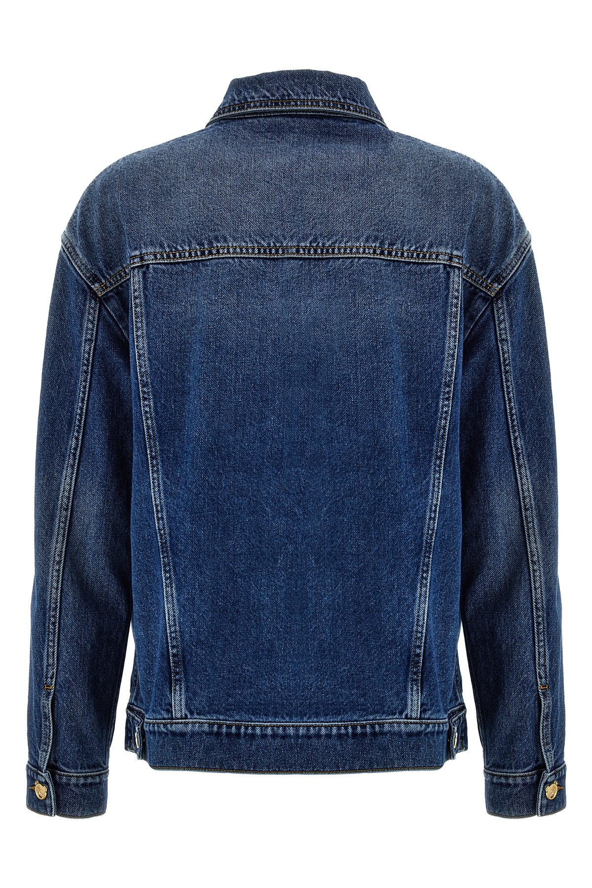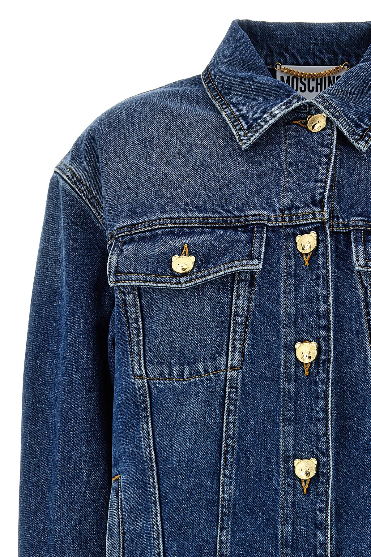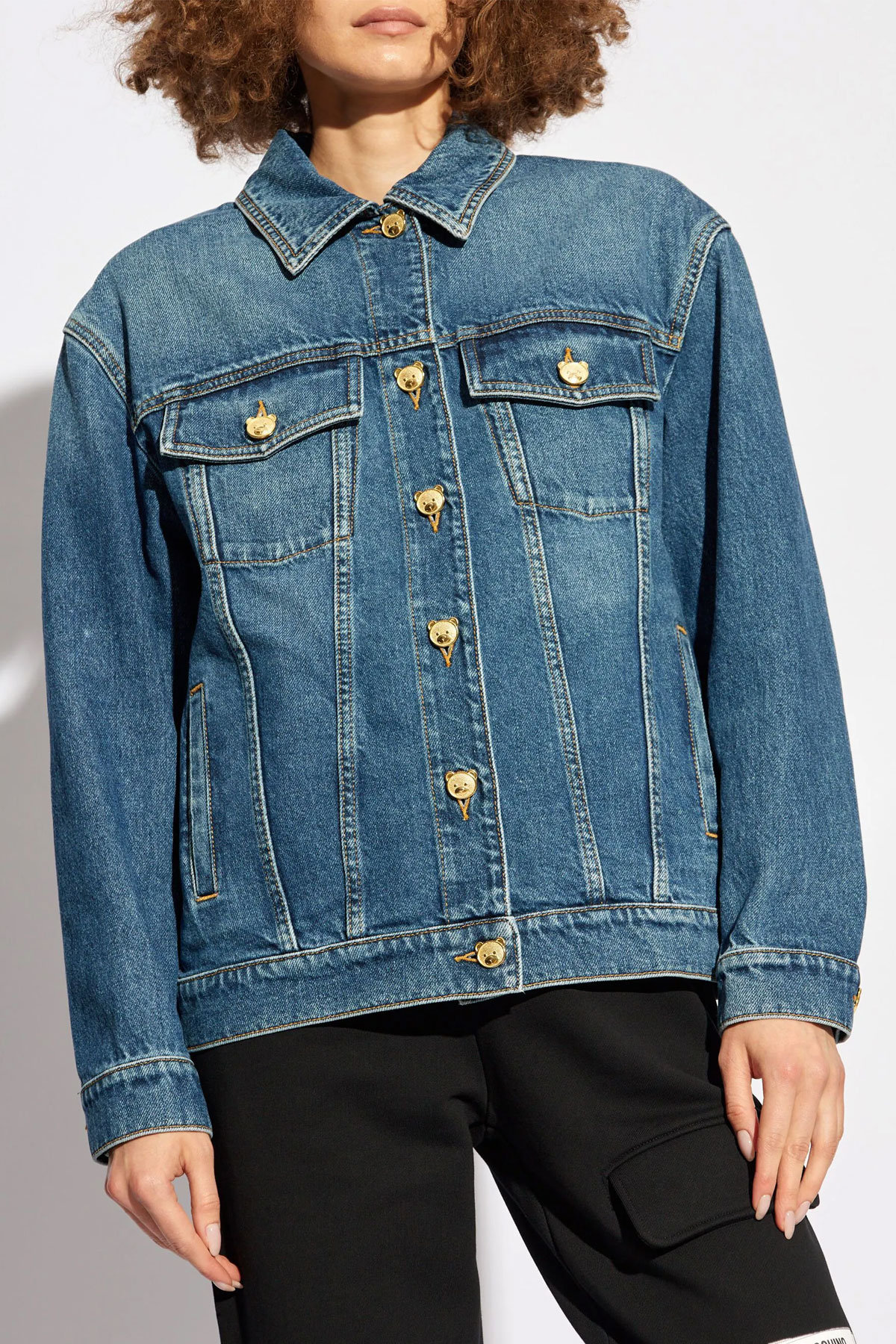 Cotton denim jacket with 'Teddy' button closure, pockets, long cuffed sleeves.