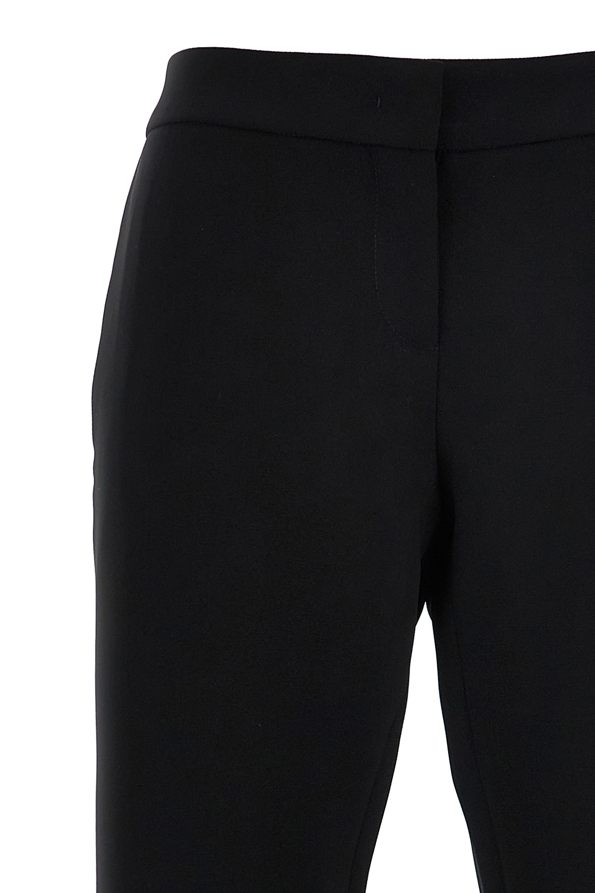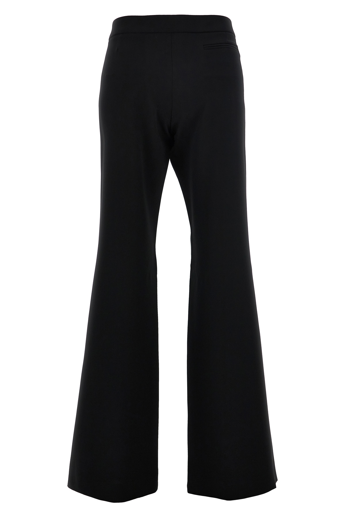 Flared leg crepe pants, hook and button zip closure, pockets.