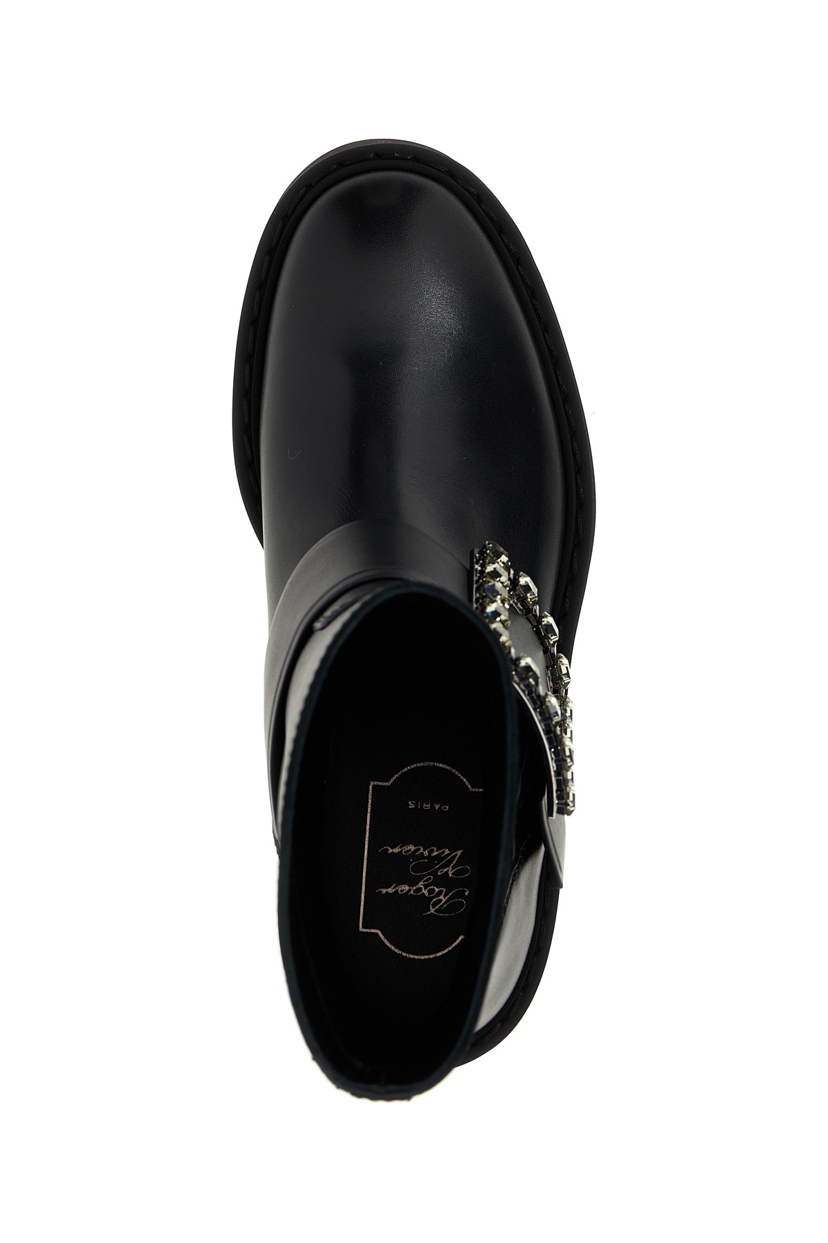 'Viv Rangers' leather ankle boots, maxi jewel buckle on the side, rubber sole.