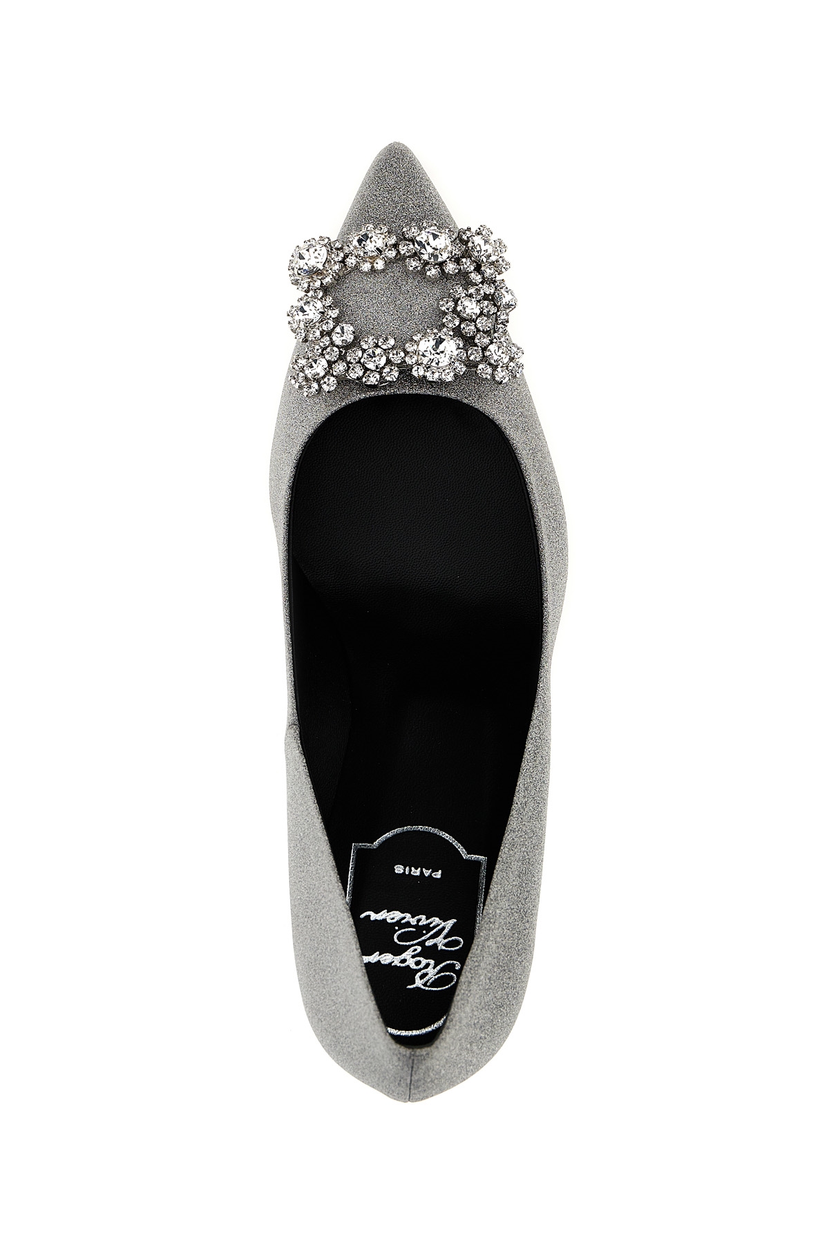 'Flower Strass' pumps in glitter fabric, front jewel buckle applique, heel.
