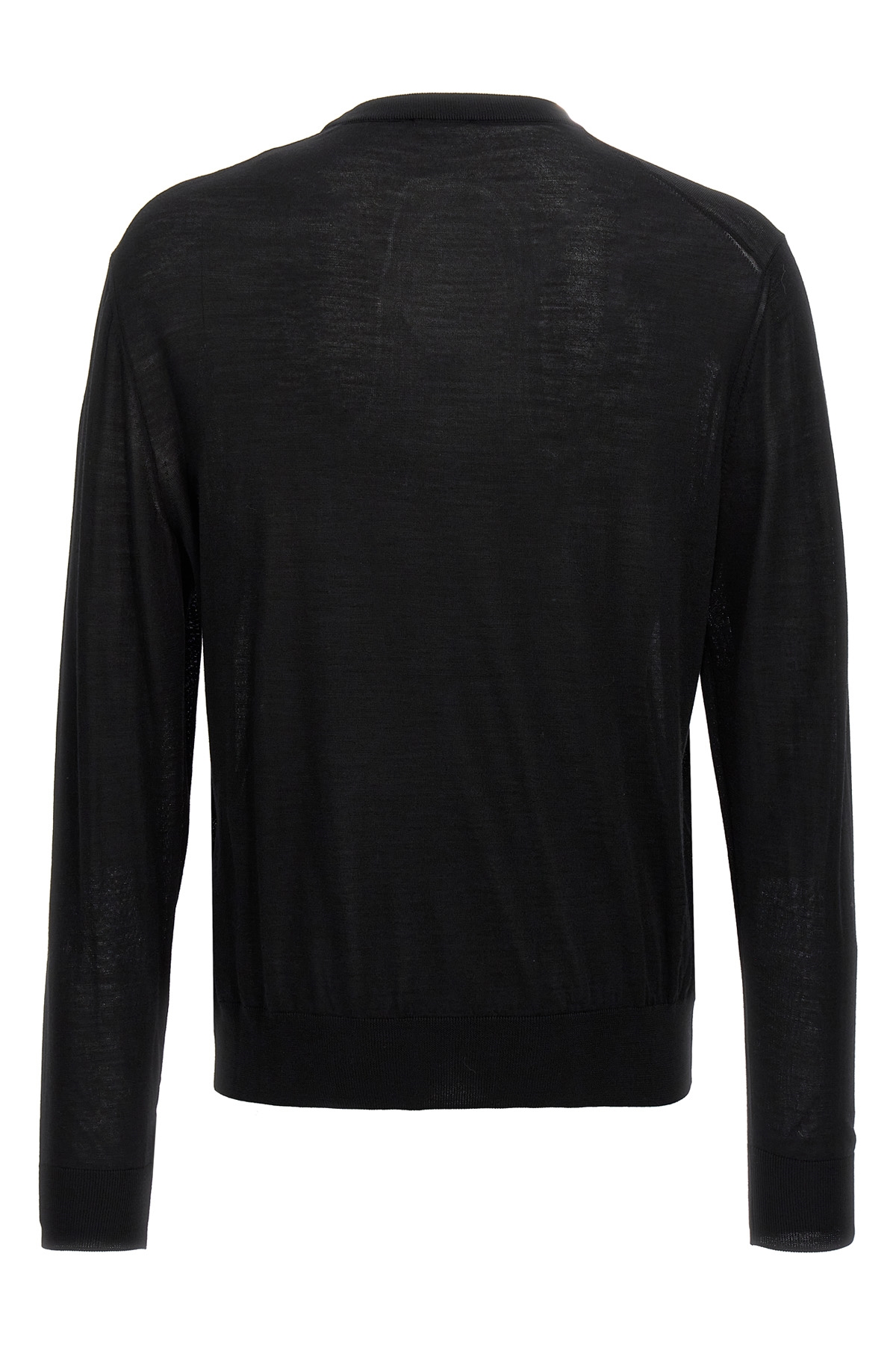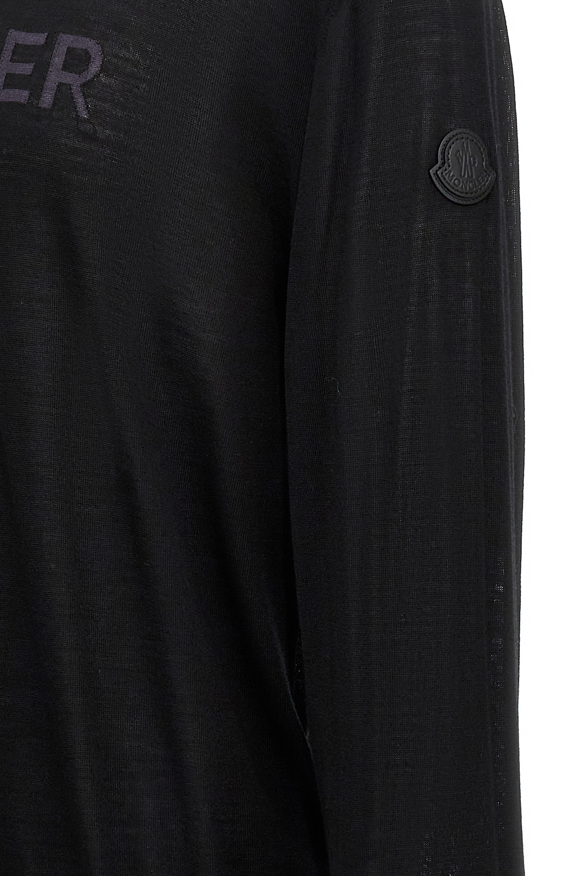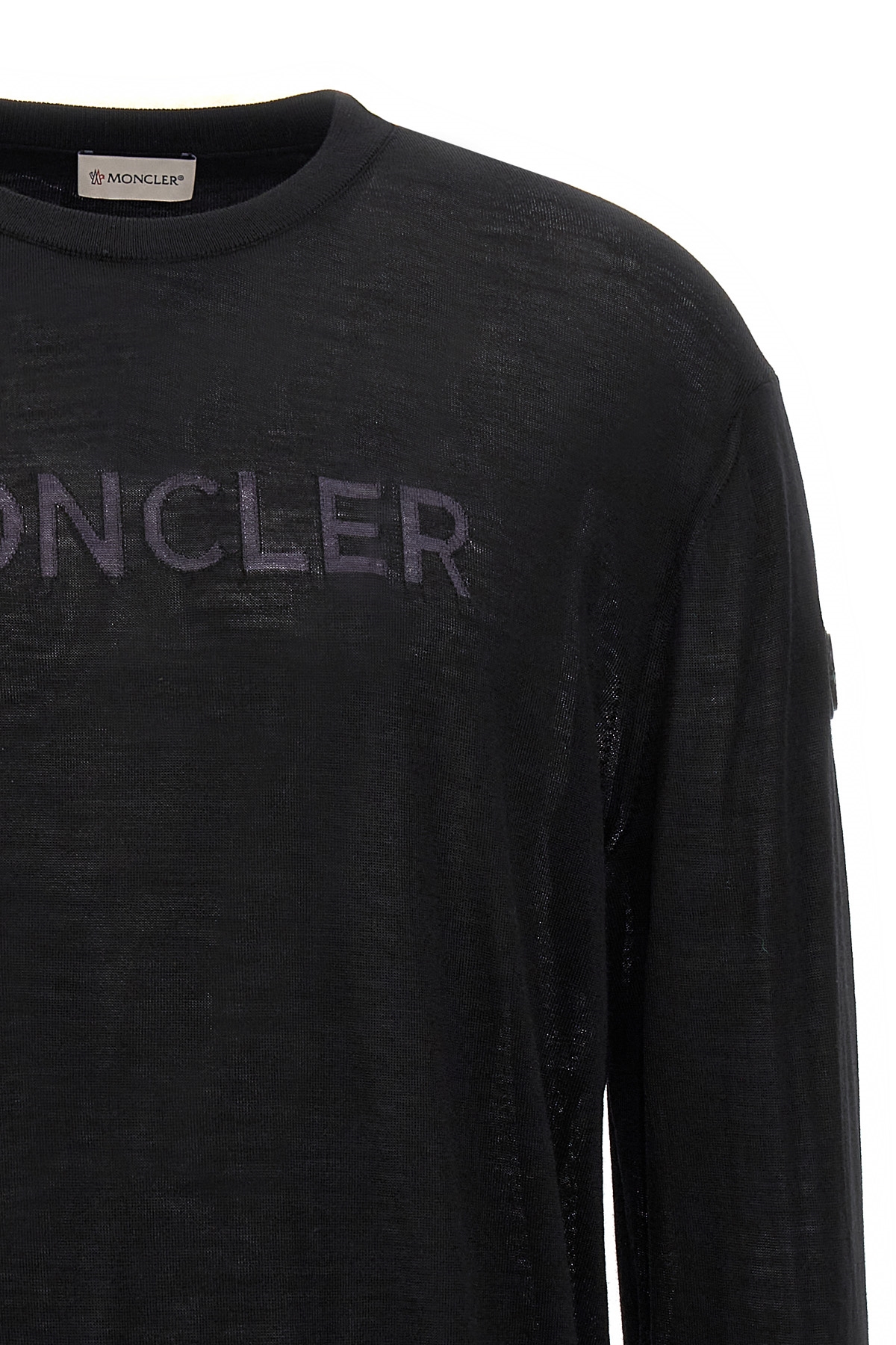 Wool sweater with front logo intarsia, crew neck, long cuffed sleeves, leather logo patch.