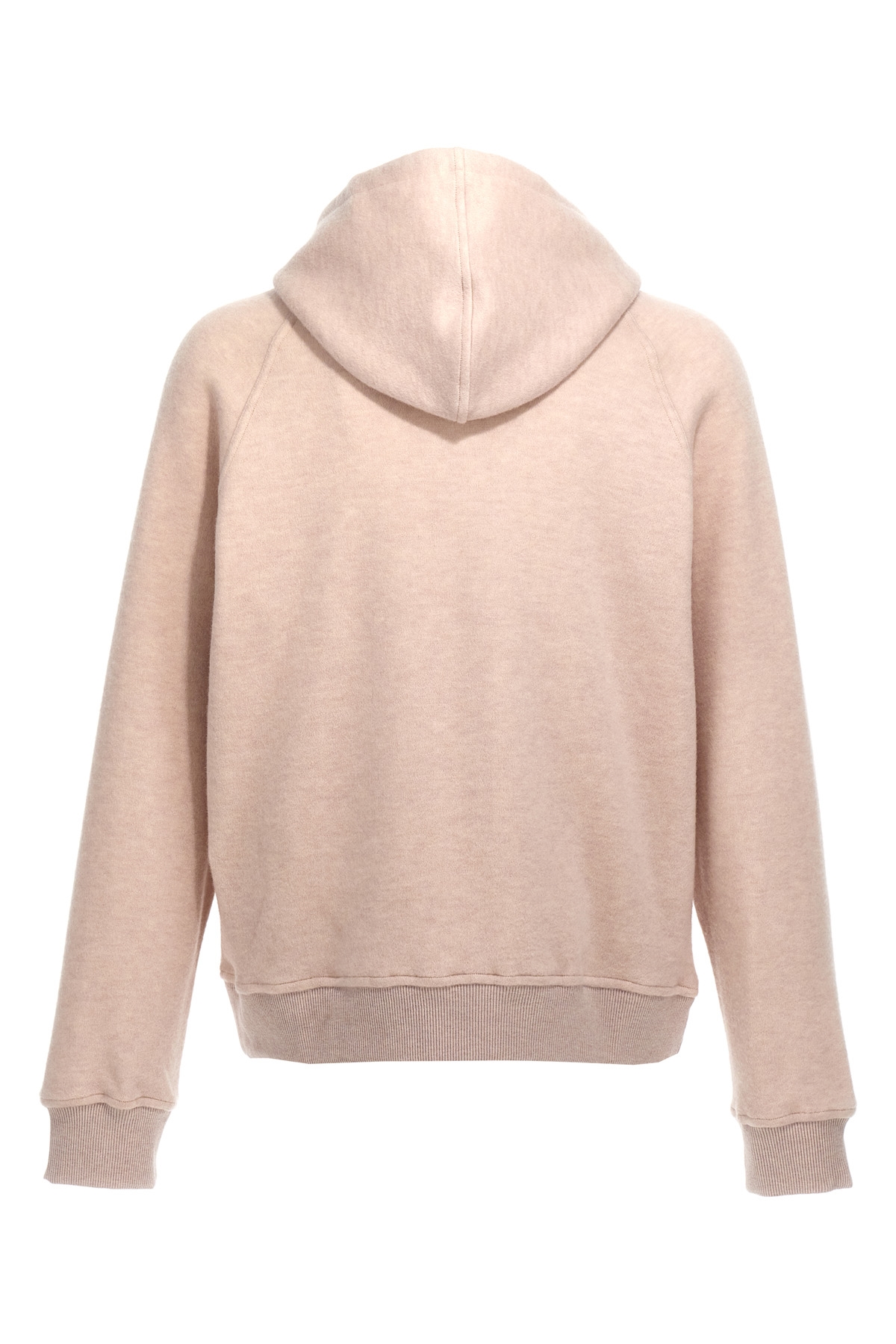 Wool blend hoodie with front logo embroidery, kangaroo pocket, long cuffed sleeves.
