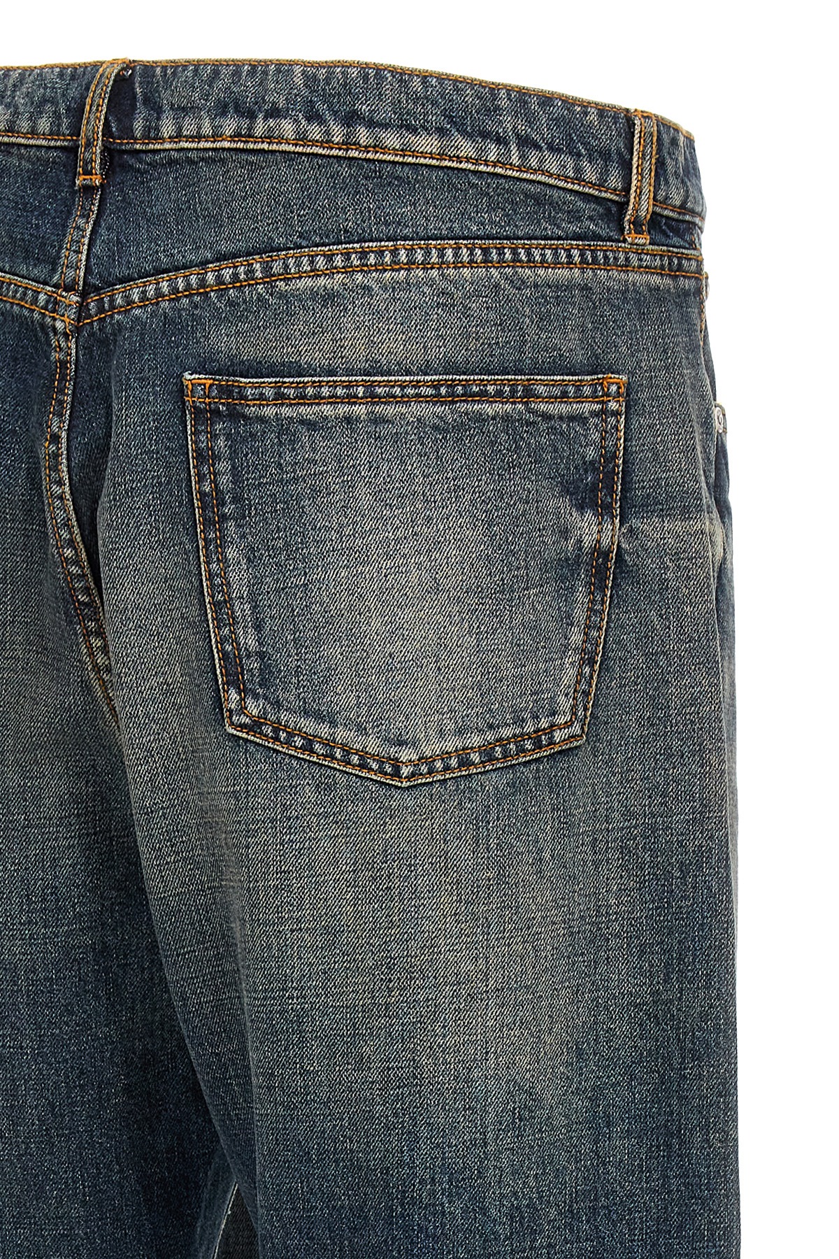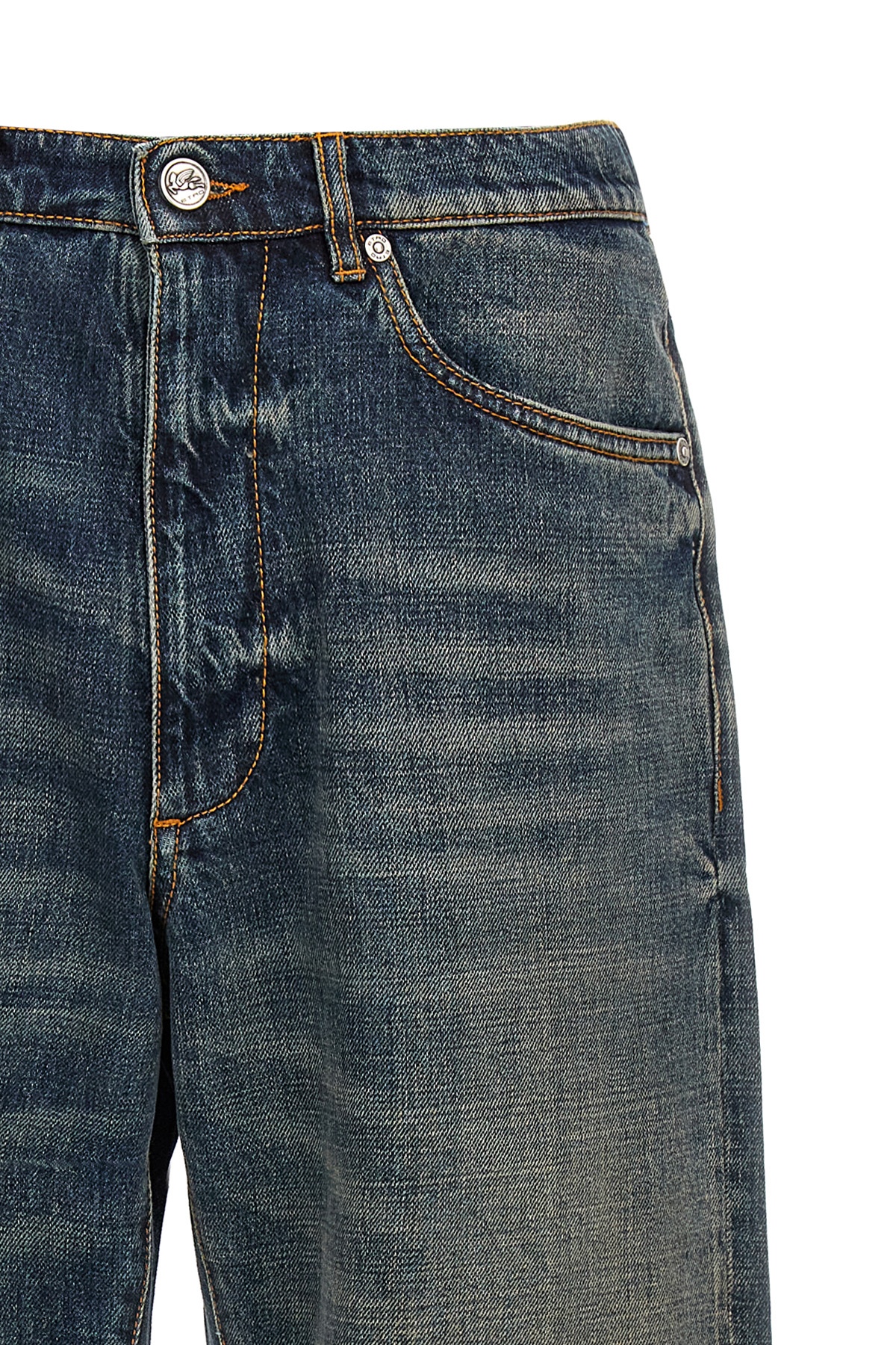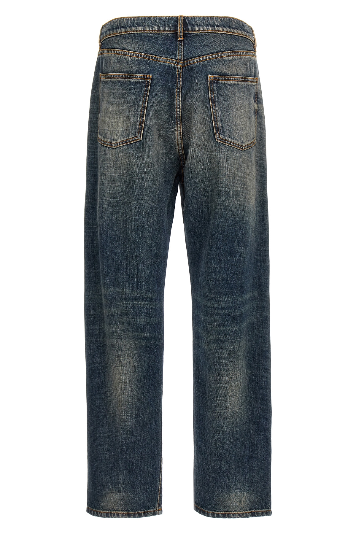 Vintage washed cotton denim jeans with 'Pegaso' embroidery, zip and button closure, five pockets.