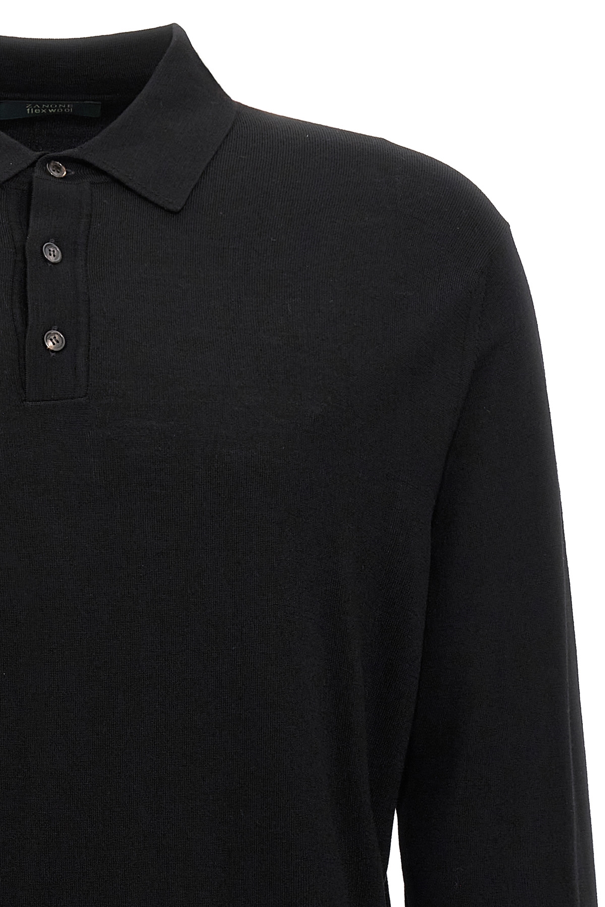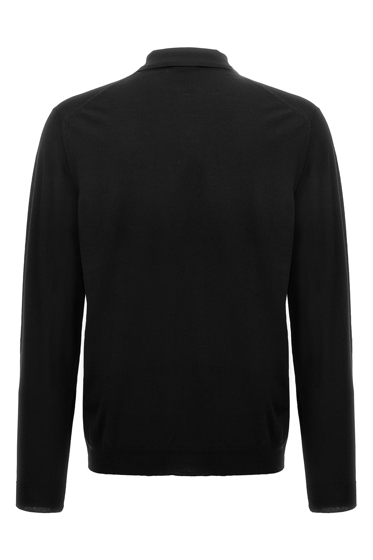 Wool knit polo shirt with long cuffed sleeves.
