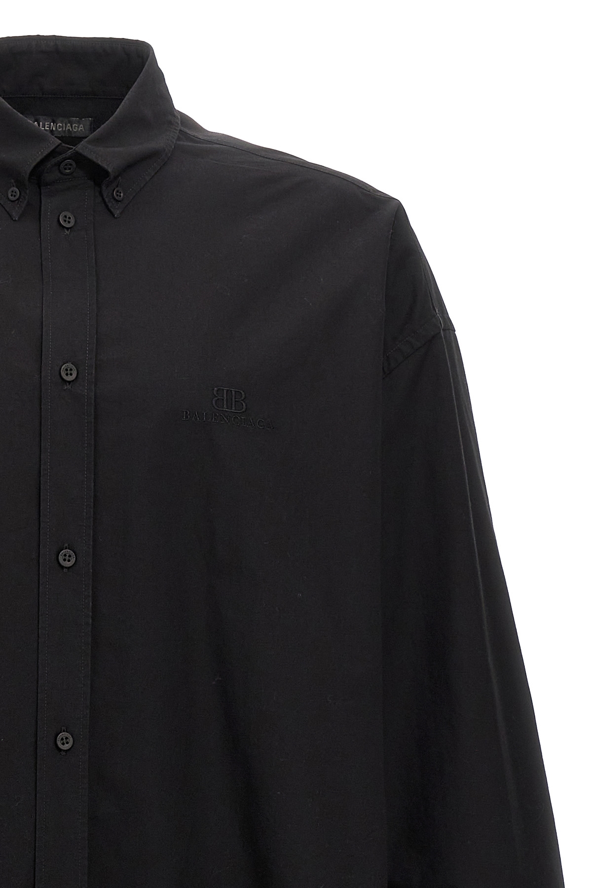 Cotton shirt with front embroidered logo, button closure, long cuffed sleeves.