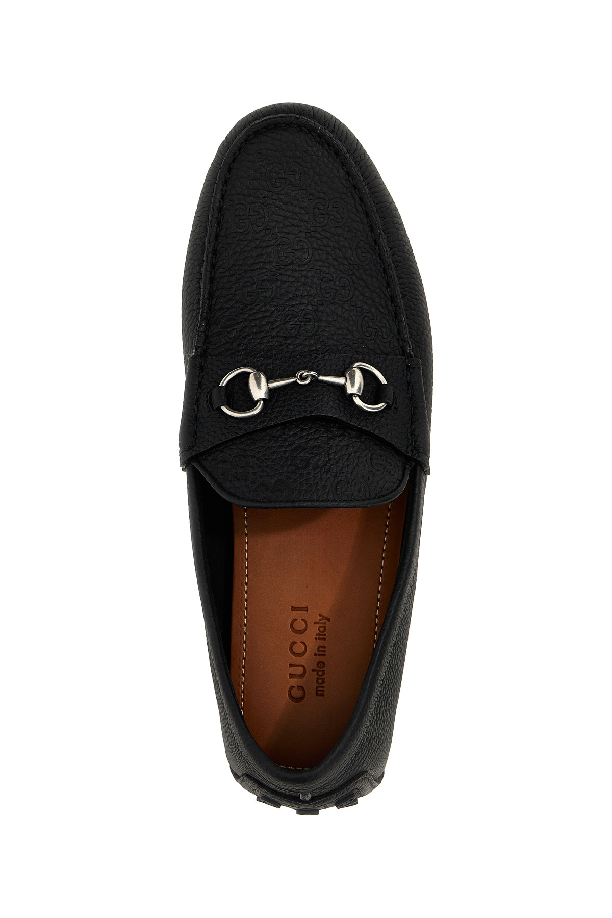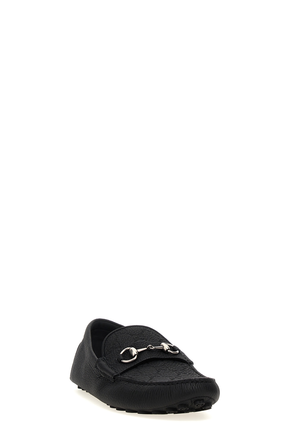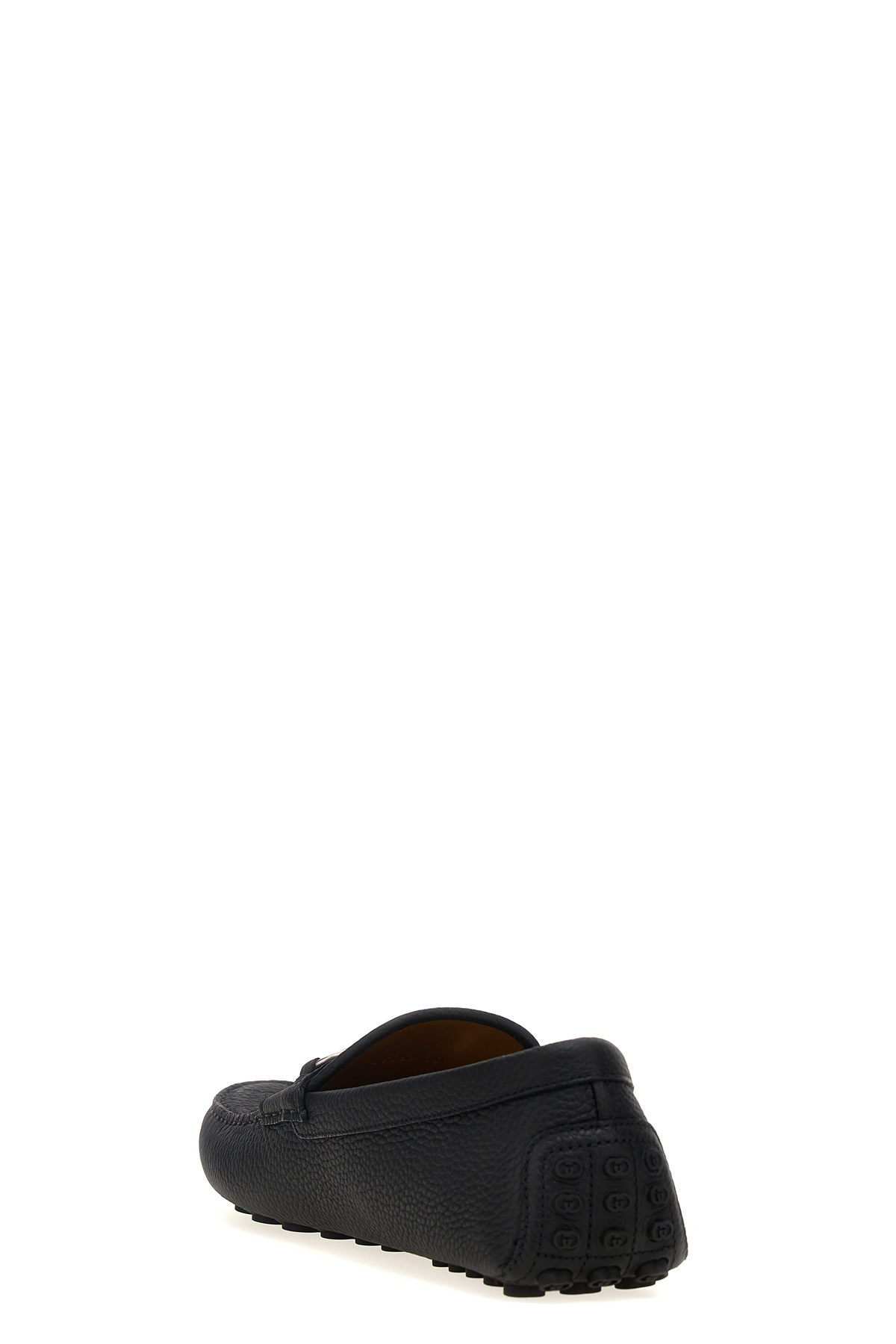 Lgoo embossed leather driver loafers with front metal 'Morsetto' application, rubber sole.