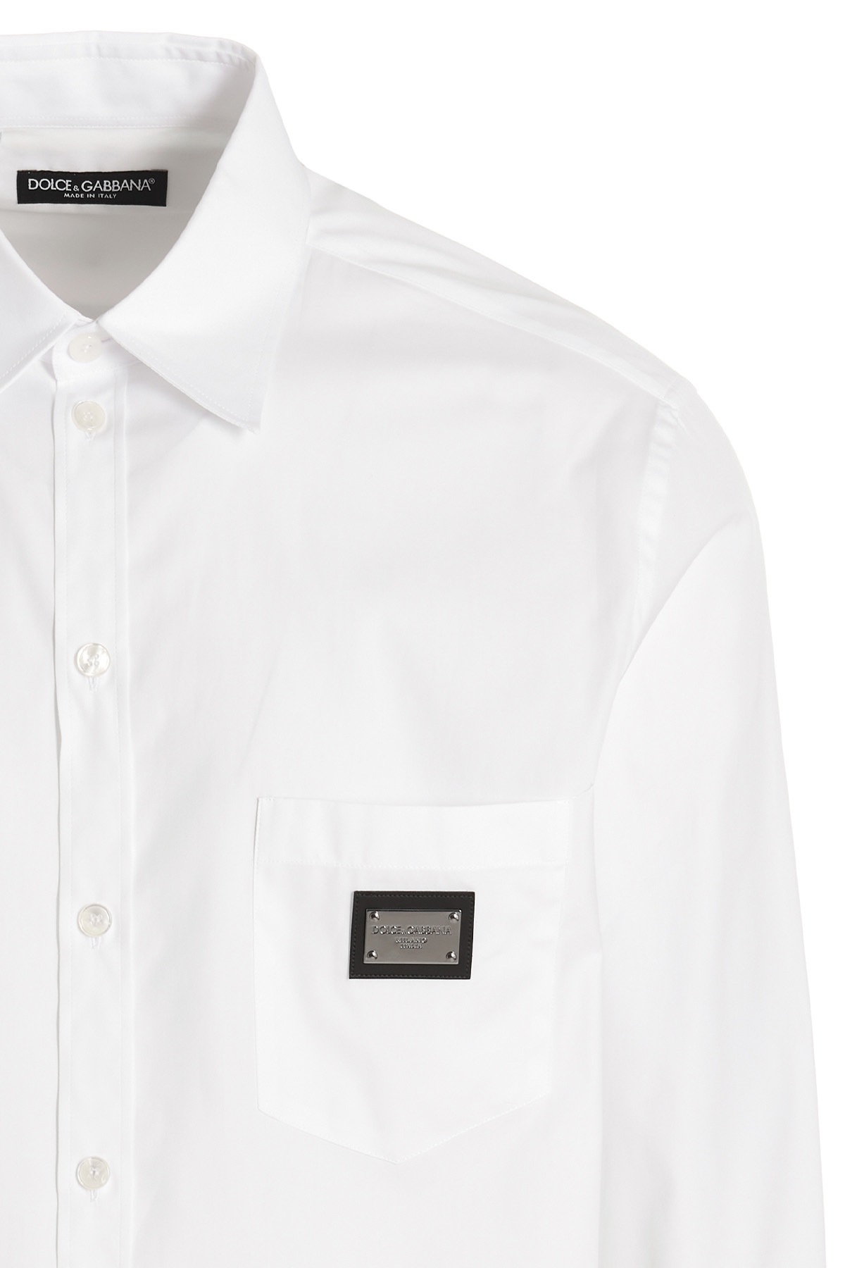 Sartorial cotton shirt with metal logo plate, button closure, front pocket, long cuffed sleeves.
