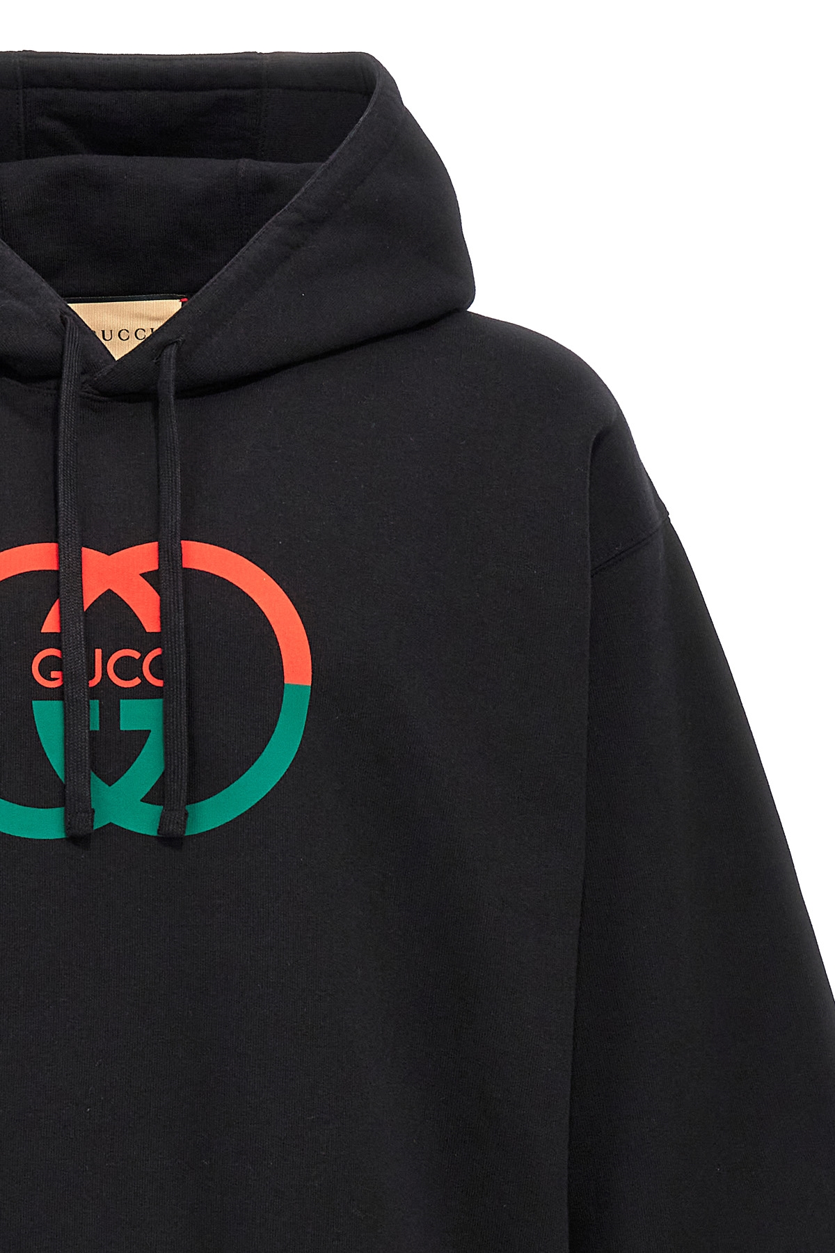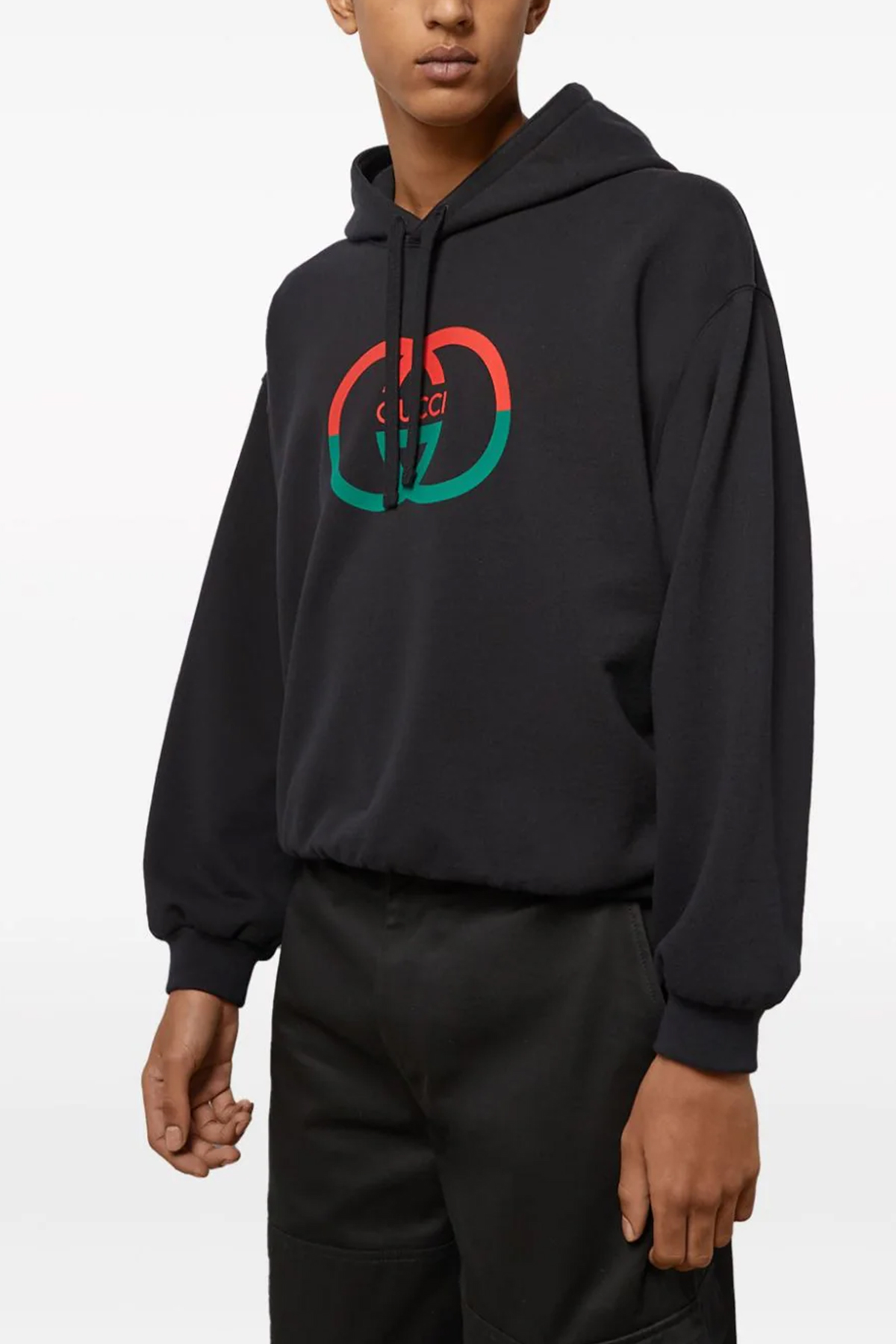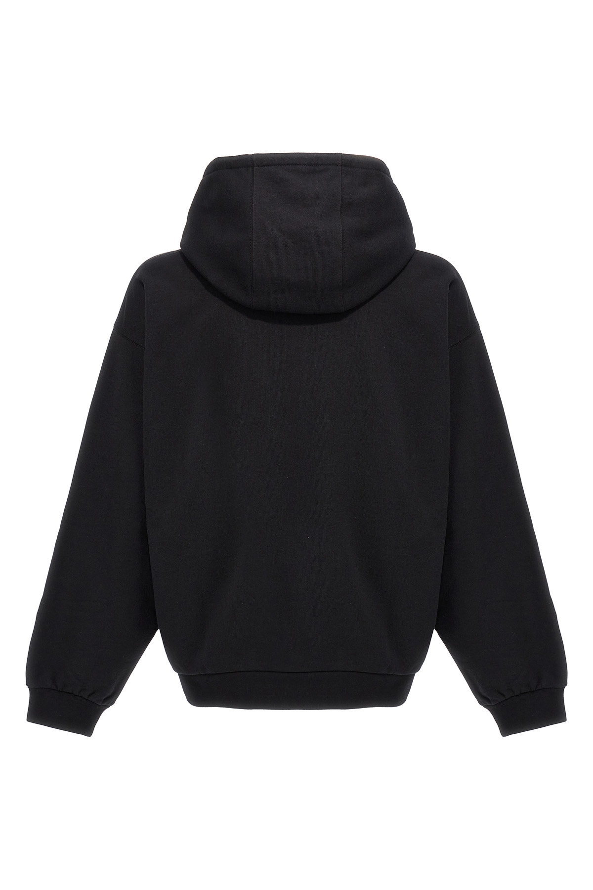 Cotton hoodie with front logo print, long cuffed sleeves.