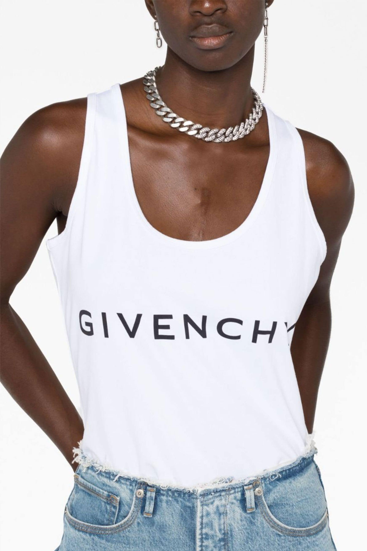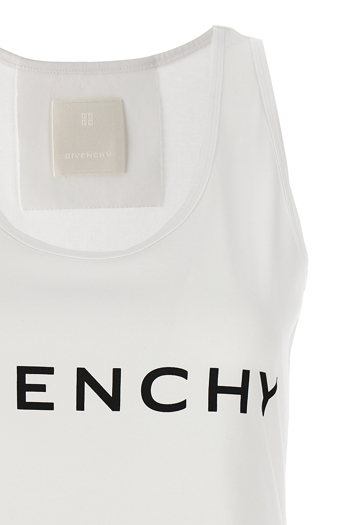 Cotton tank top with front logo print and round neckline.