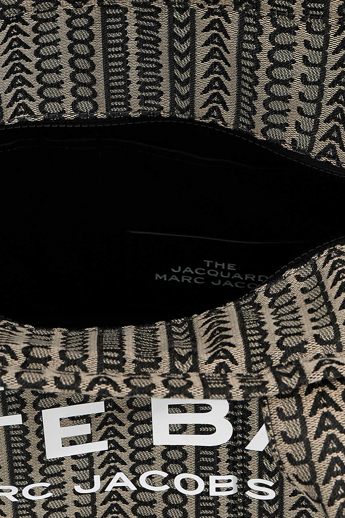 'The Monogram Large Tote' shopping bag in jacquard fabric with leather details, top zip closure, top handle with leather details.