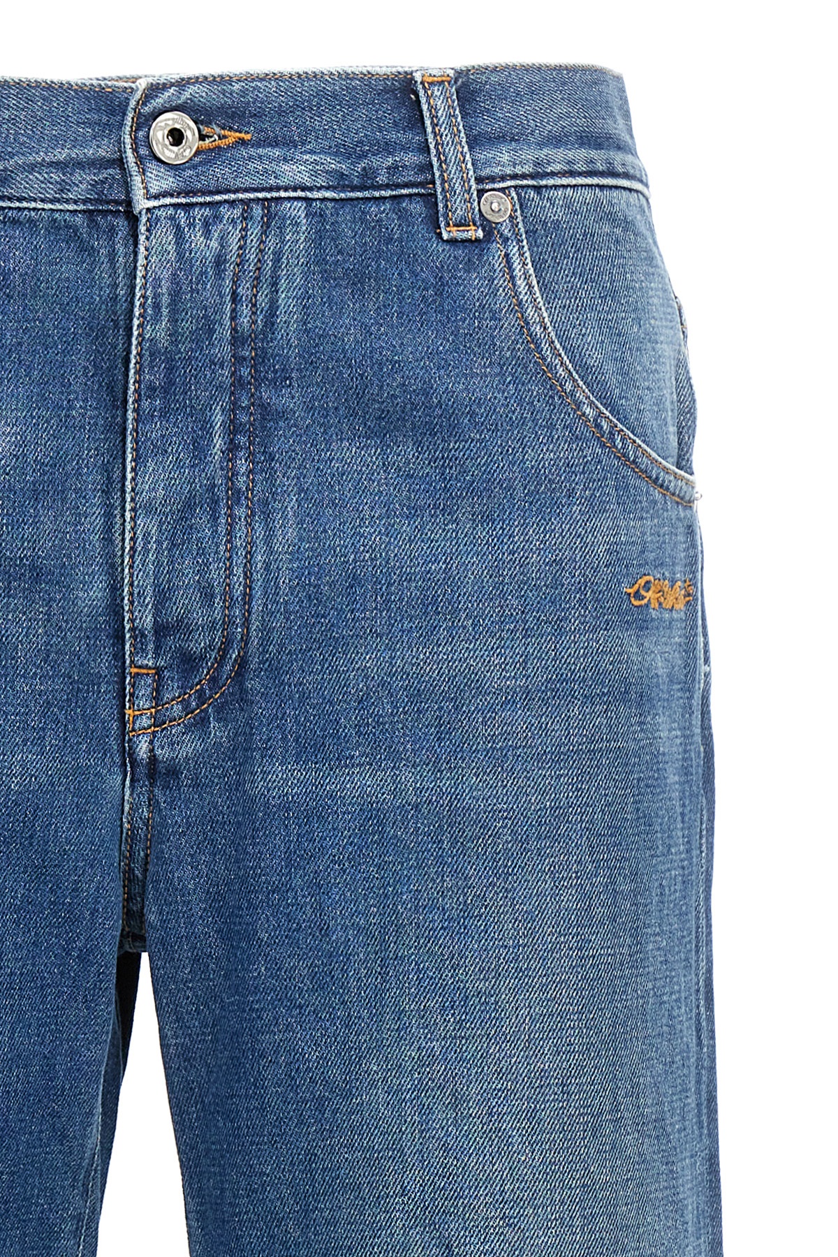 Cotton denim jeans with front logo embroidery, button closure, five pockets, leather logo tag, wide leg.