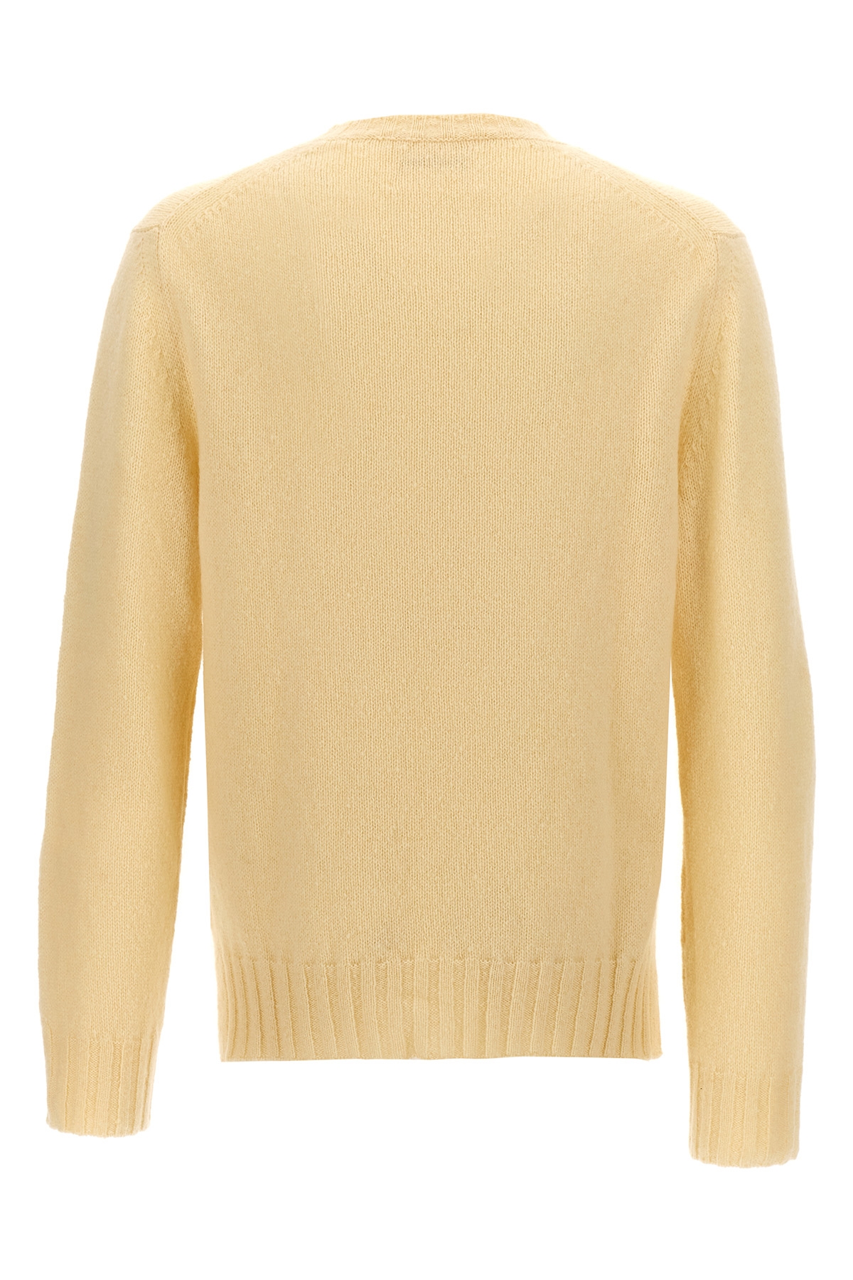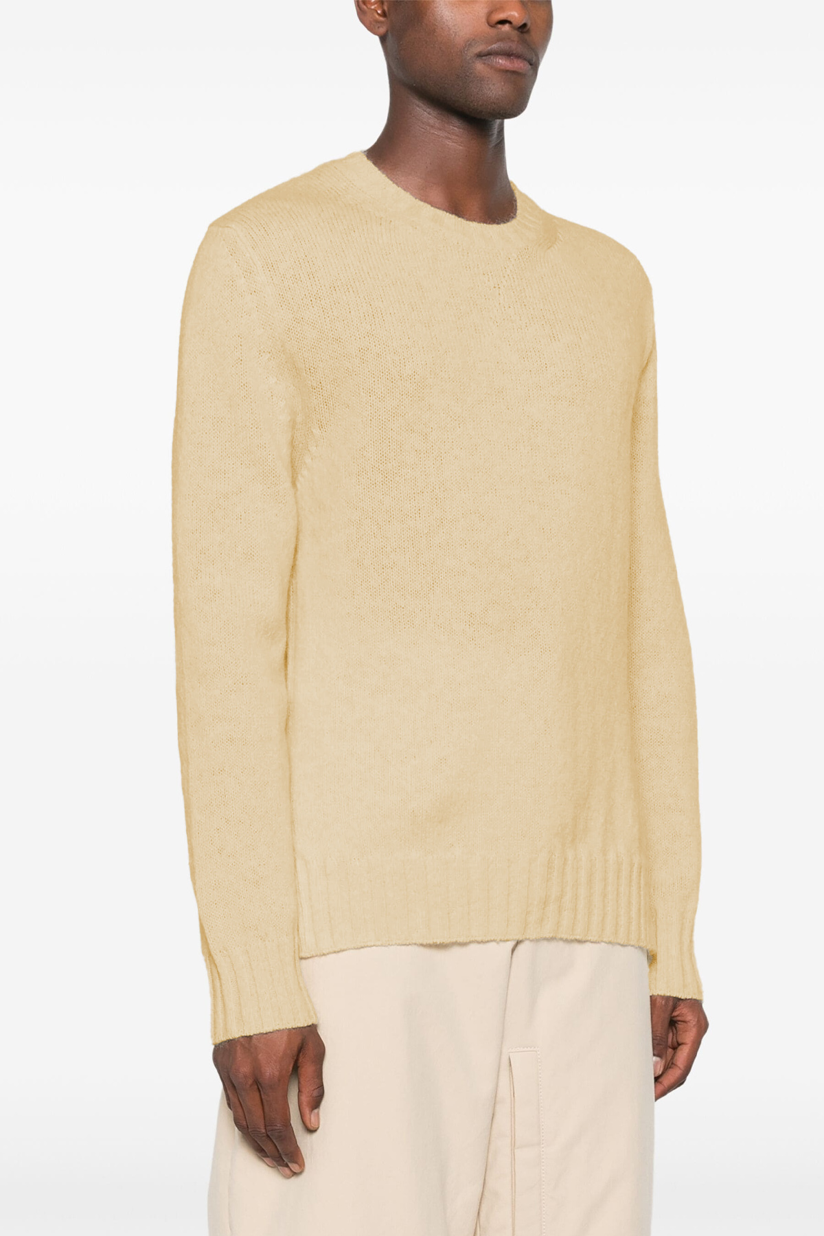 Wool blend sweater, crew neck, long cuffed sleeves, side splits at the hem.