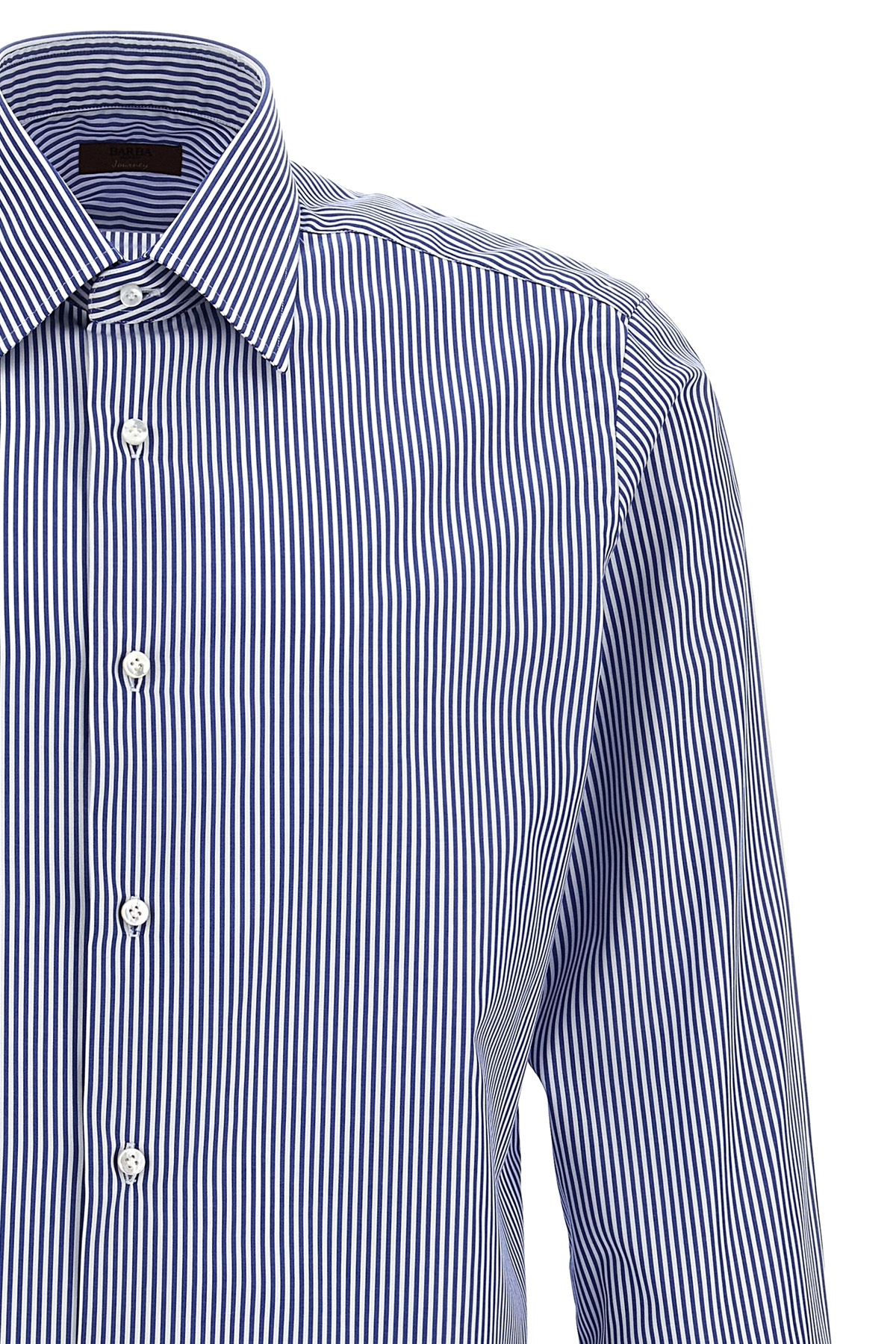 'Journey' striped cotton shirt with button closure, long cuffed sleeves.