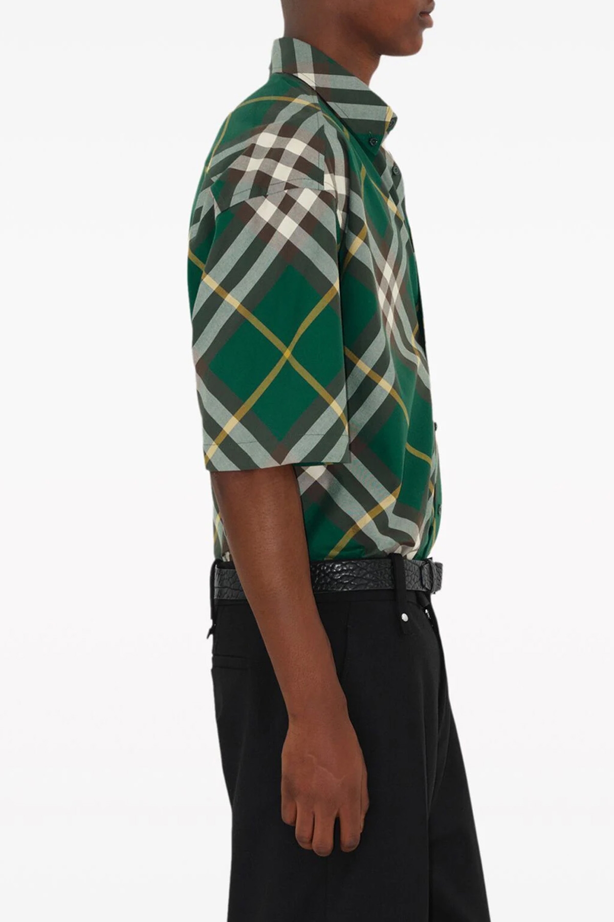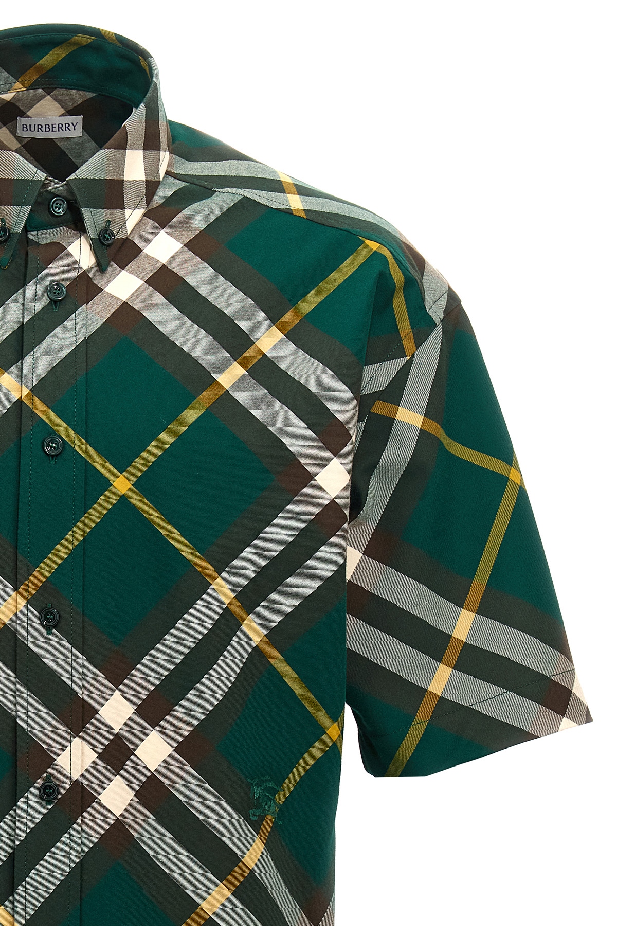 Check print cotton shirt, front logo embroidery, button closure, short sleeves.