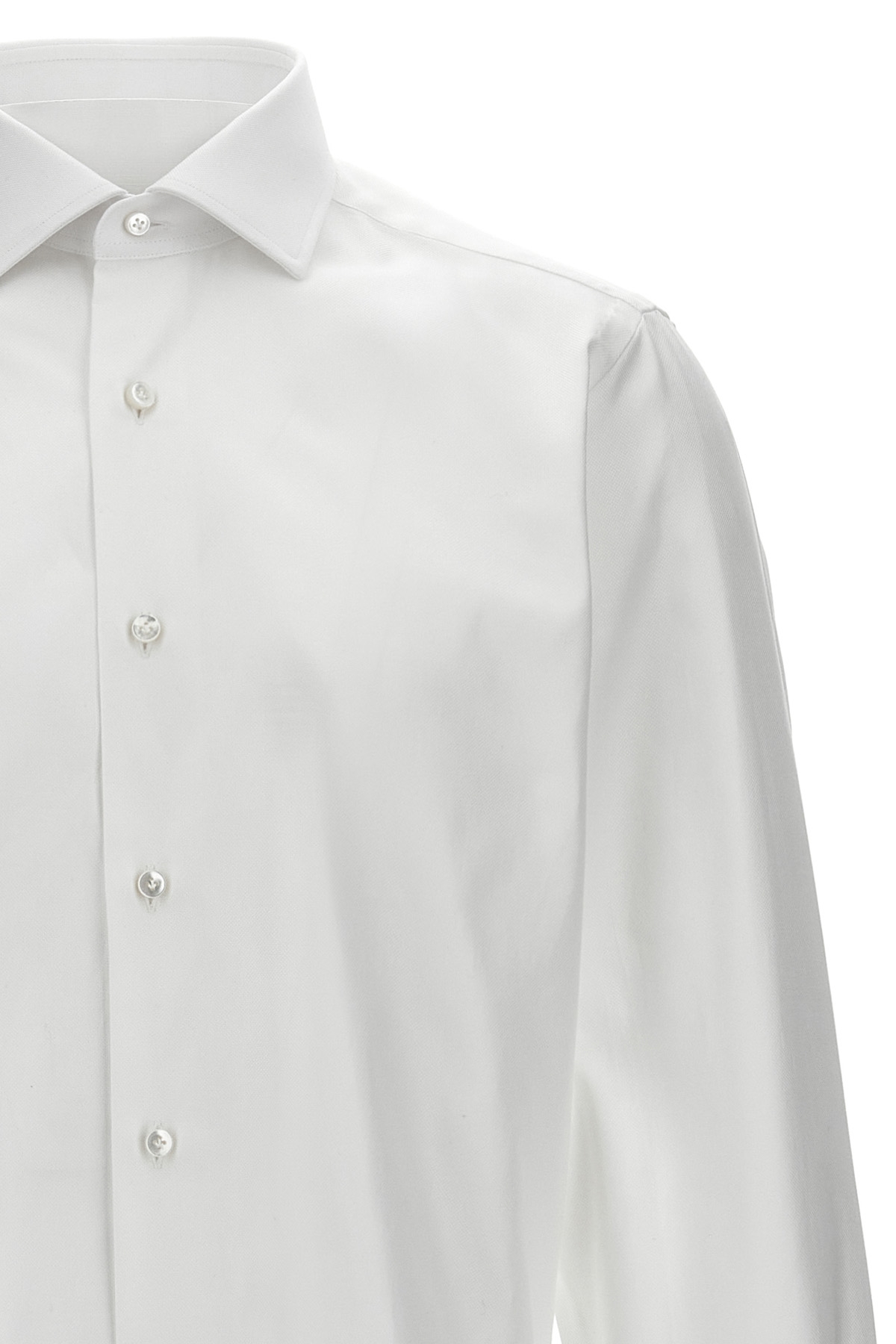 'Journey' micro-pearl cotton shirt with button closure, long cuffed sleeves.