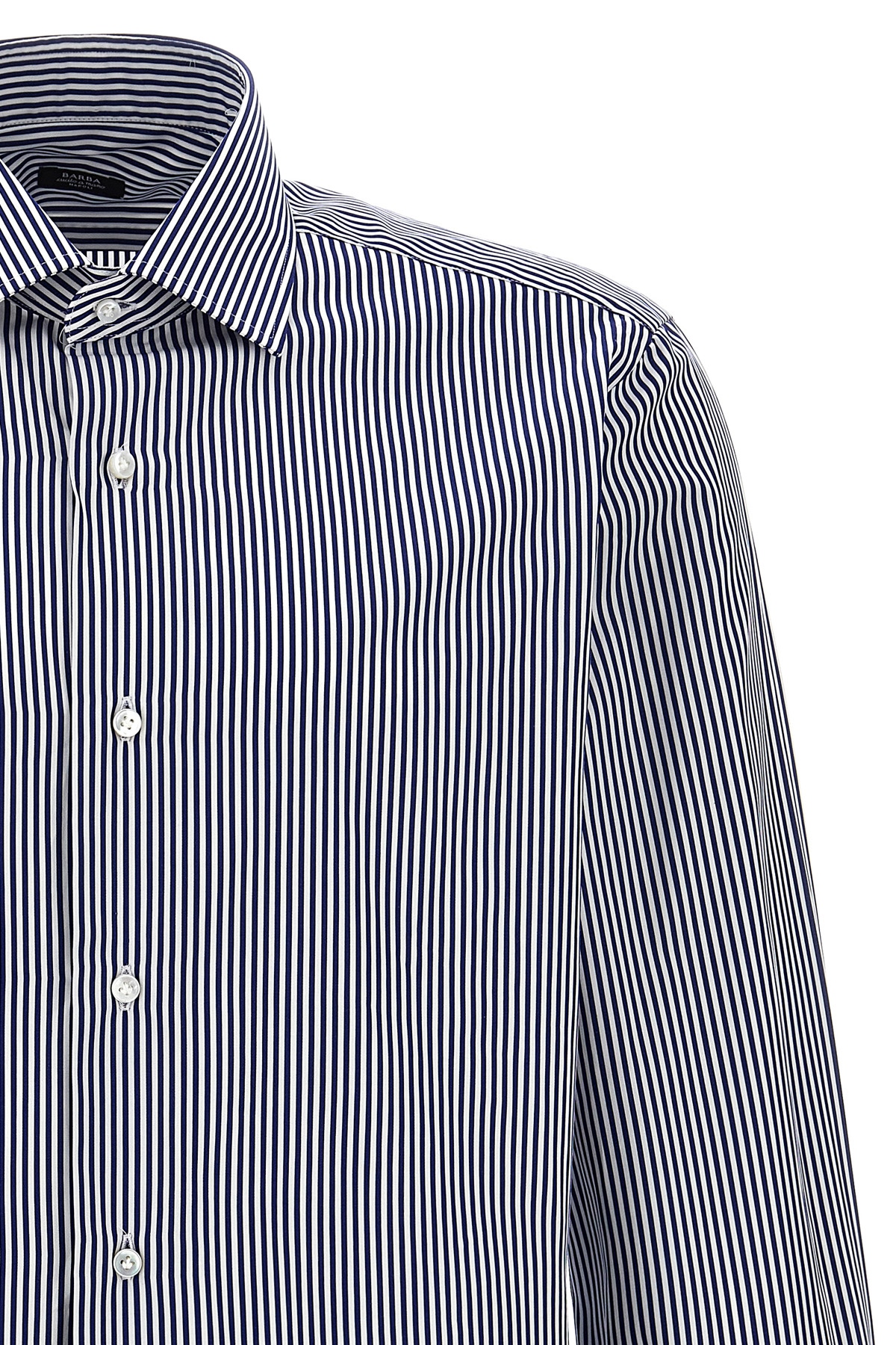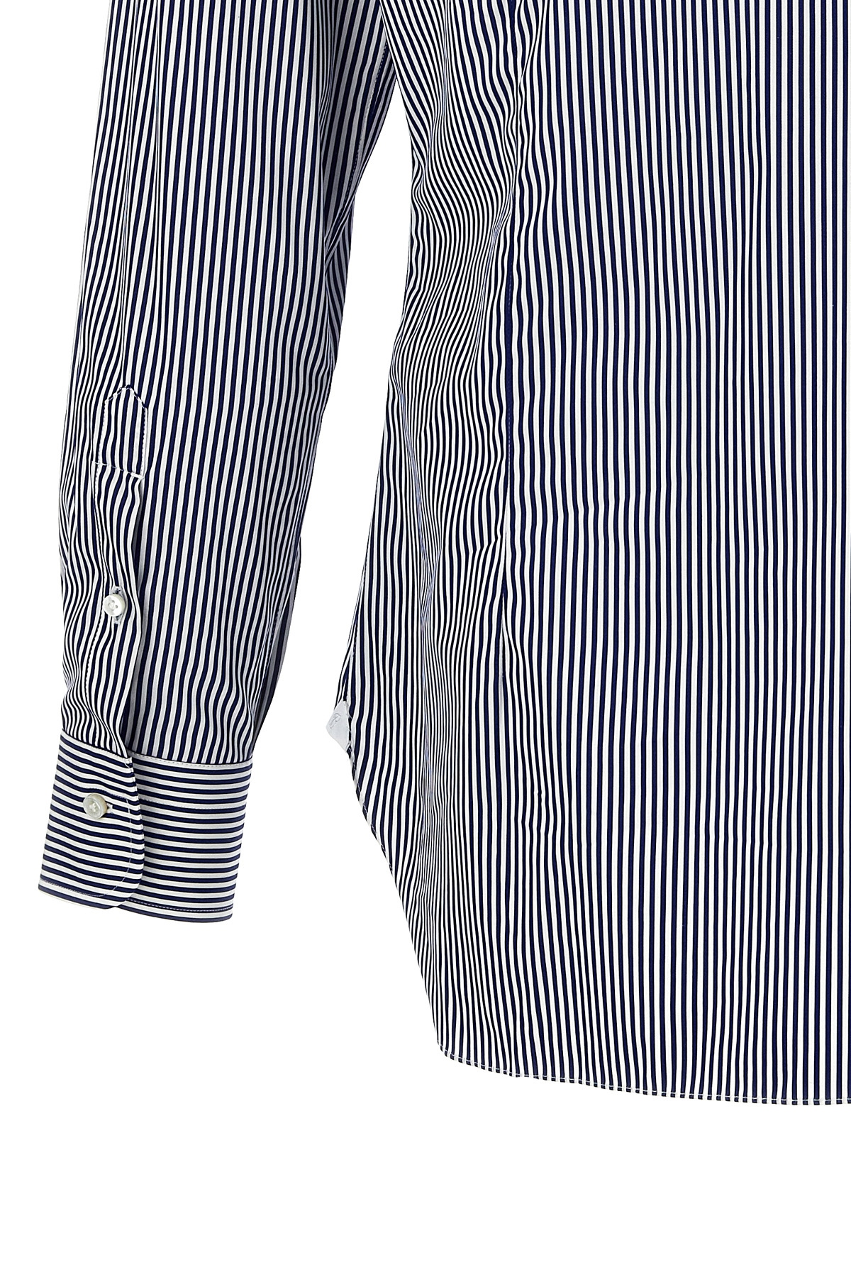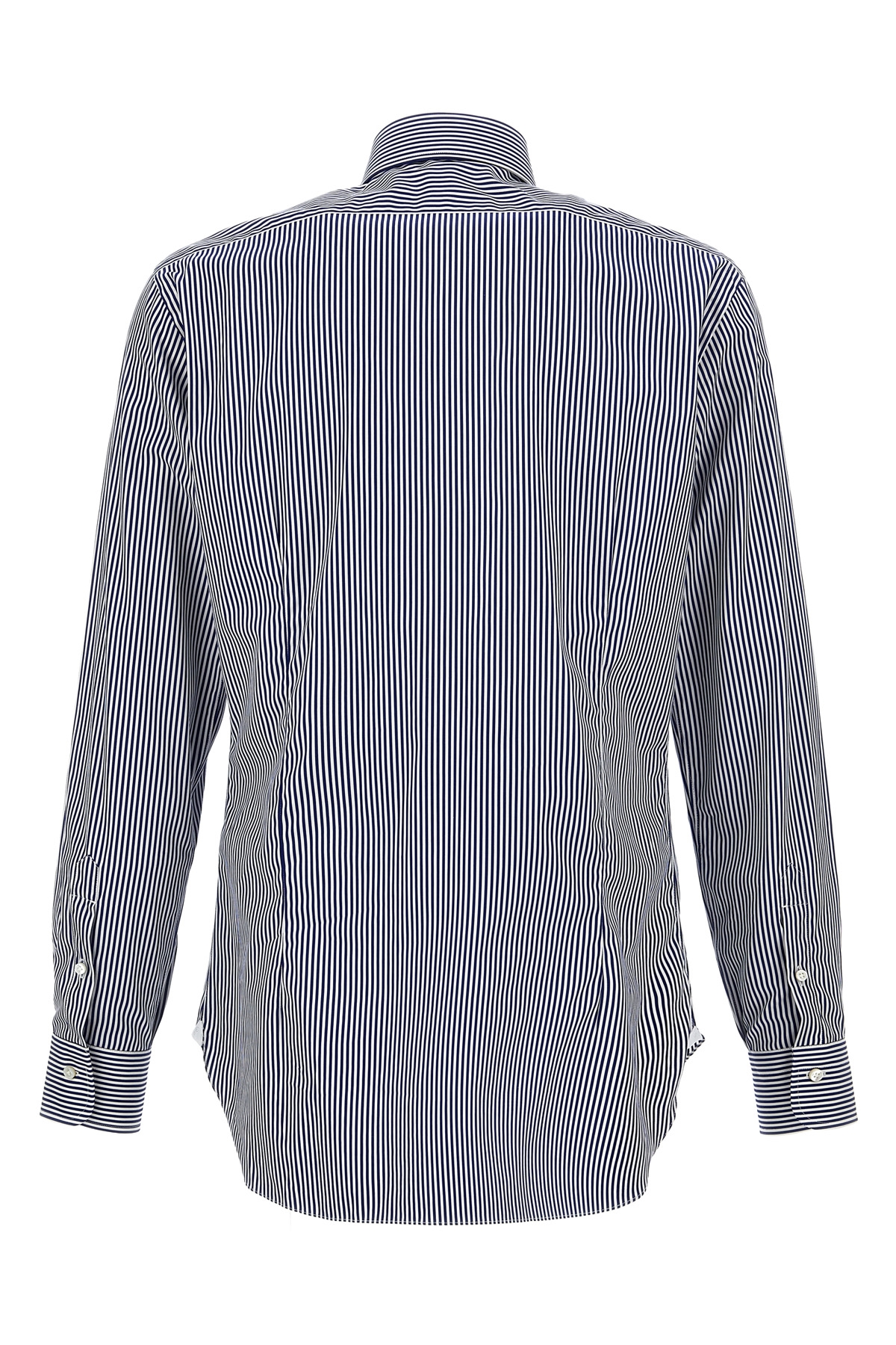 Striped cotton shirt with button closure, long cuffed sleeves.