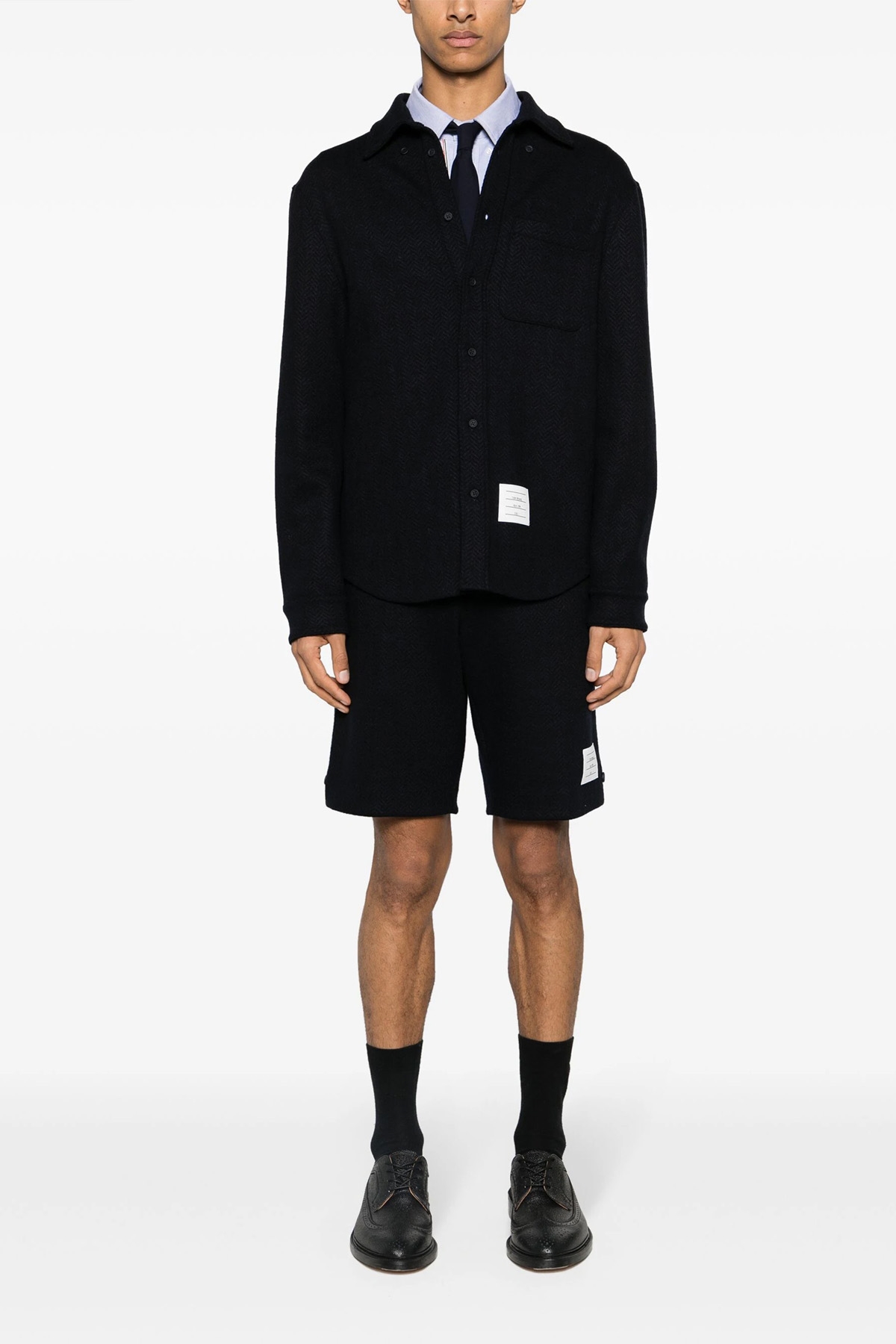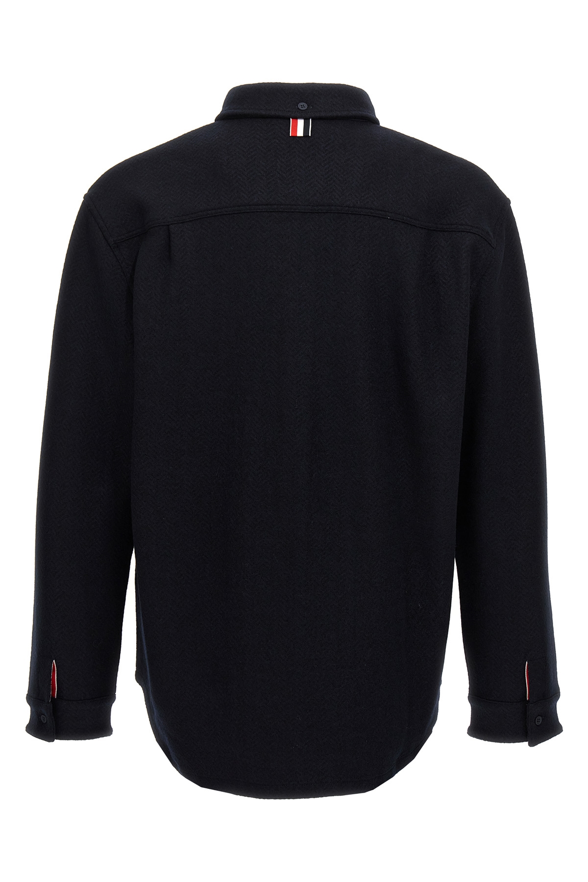 Herringbone cotton and wool shirt, button closure, front pocket, long cuffed sleeves.