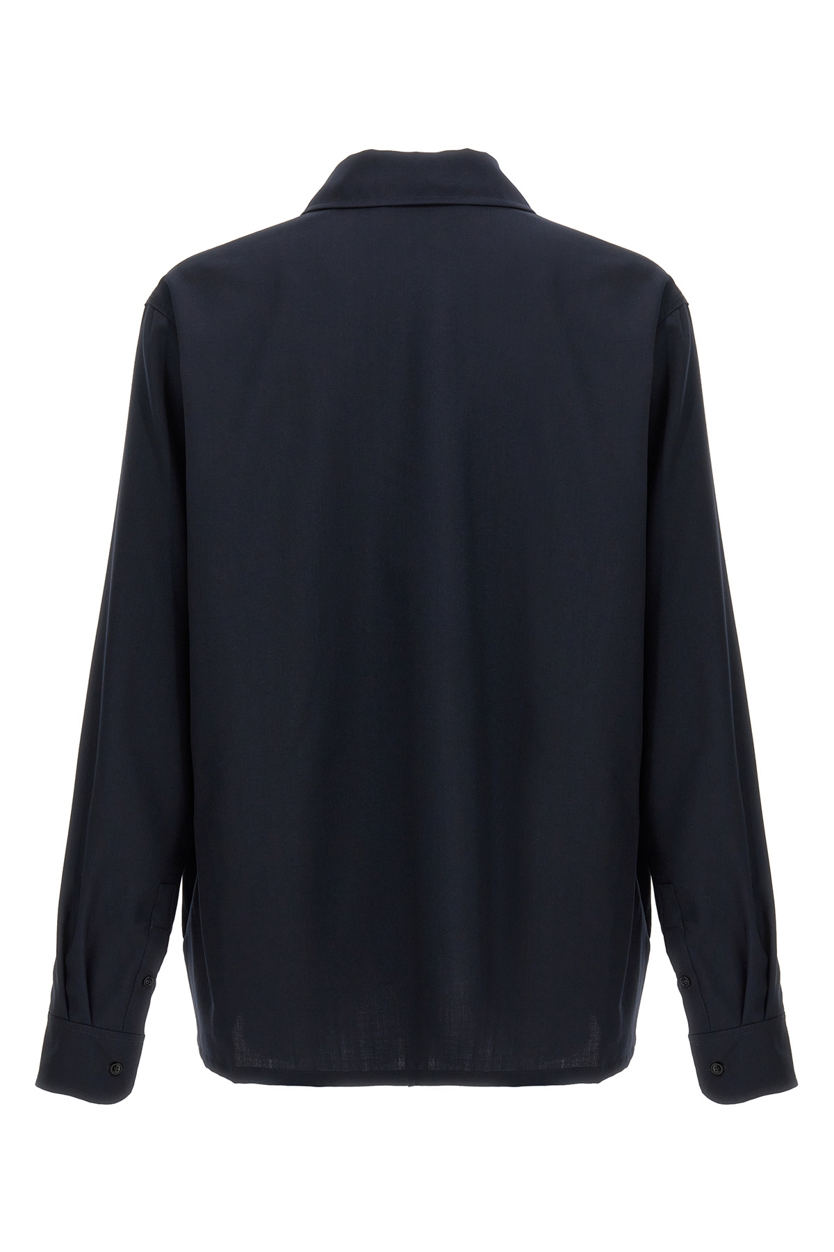 Wool shirt, front pocket with embroidered logo, button closure, long cuffed sleeves.