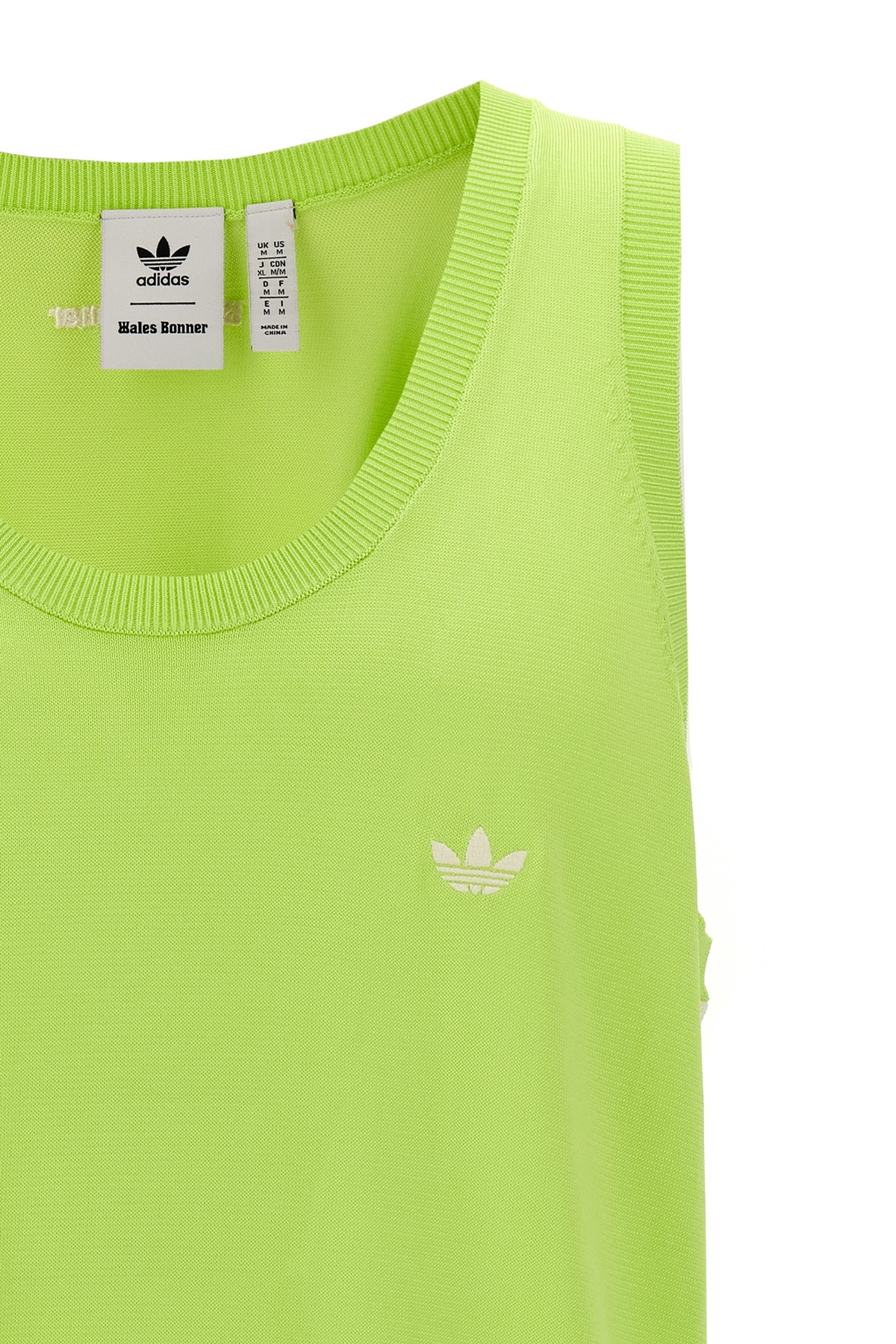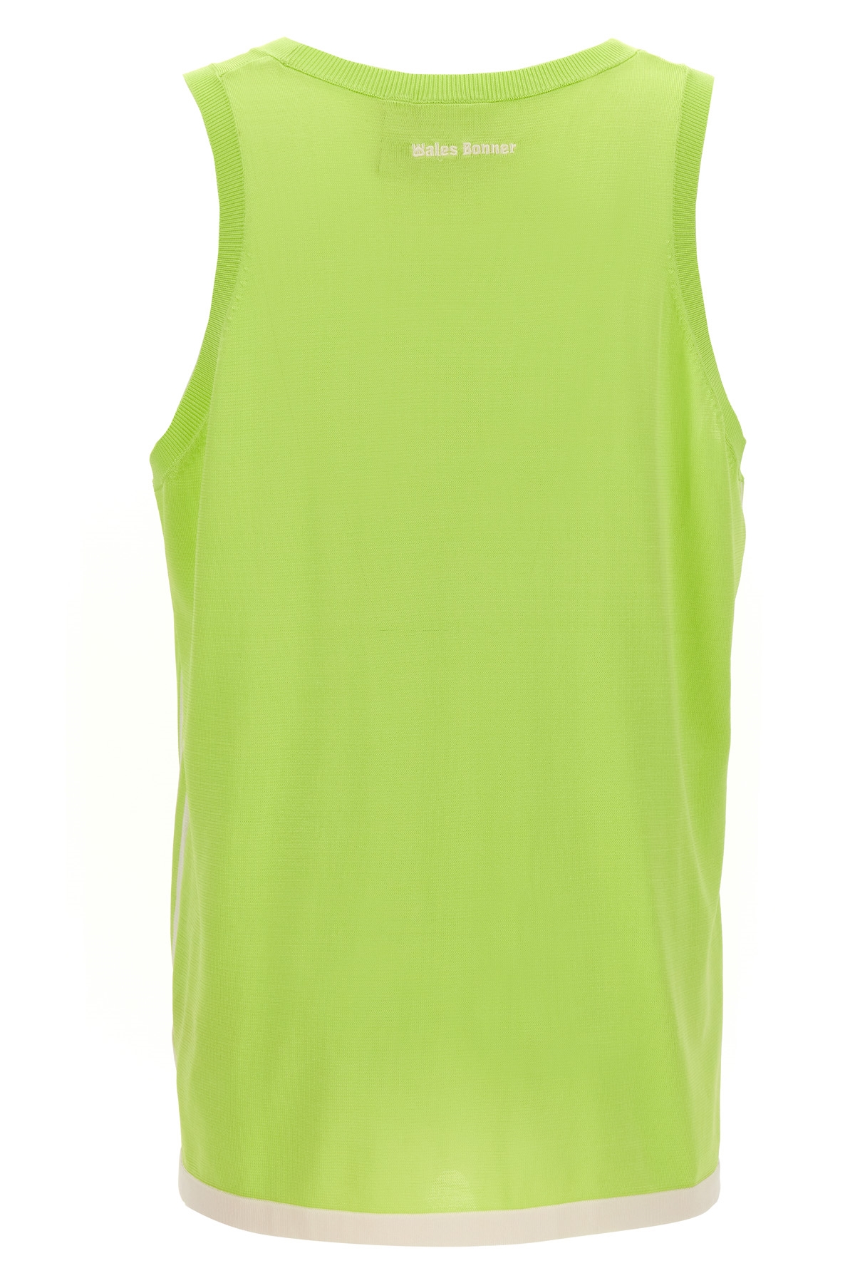Adidas Originals x Wales Bonner viscose knit tank top with contrast side bands, logo embroidery on the front and back, scoop neck.