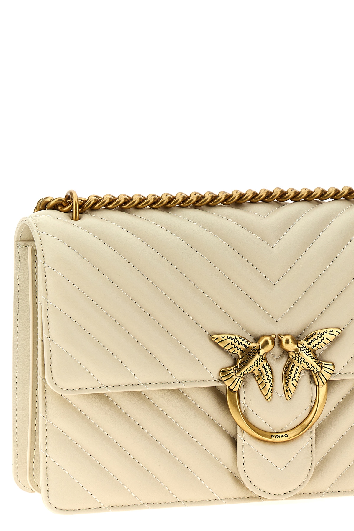 'Classic Love Bag One' chevron quilted nappa leather crossbody bag, metal logo closure, chain and leather shoulder strap.
