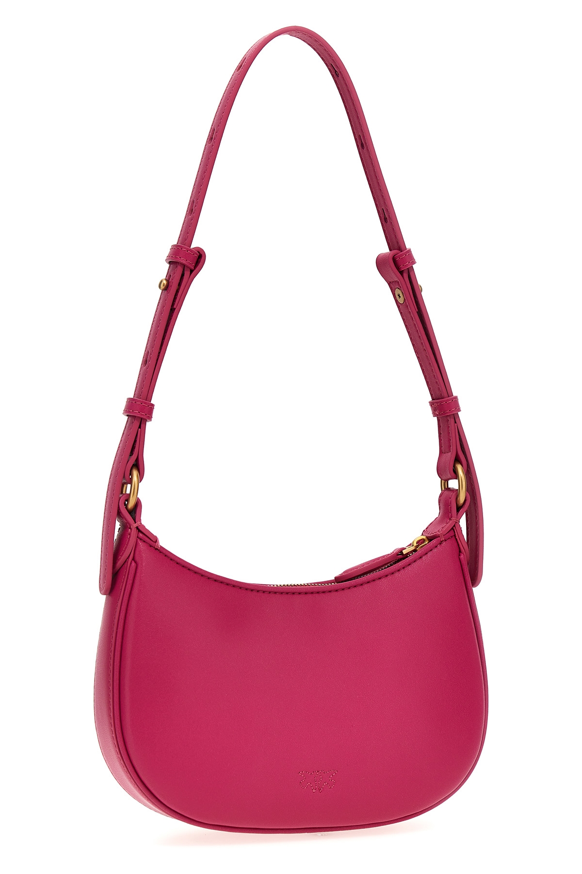 'Half Moon Baby' leather handbag with front logo, zip closure, adjustable handle with removable insert.