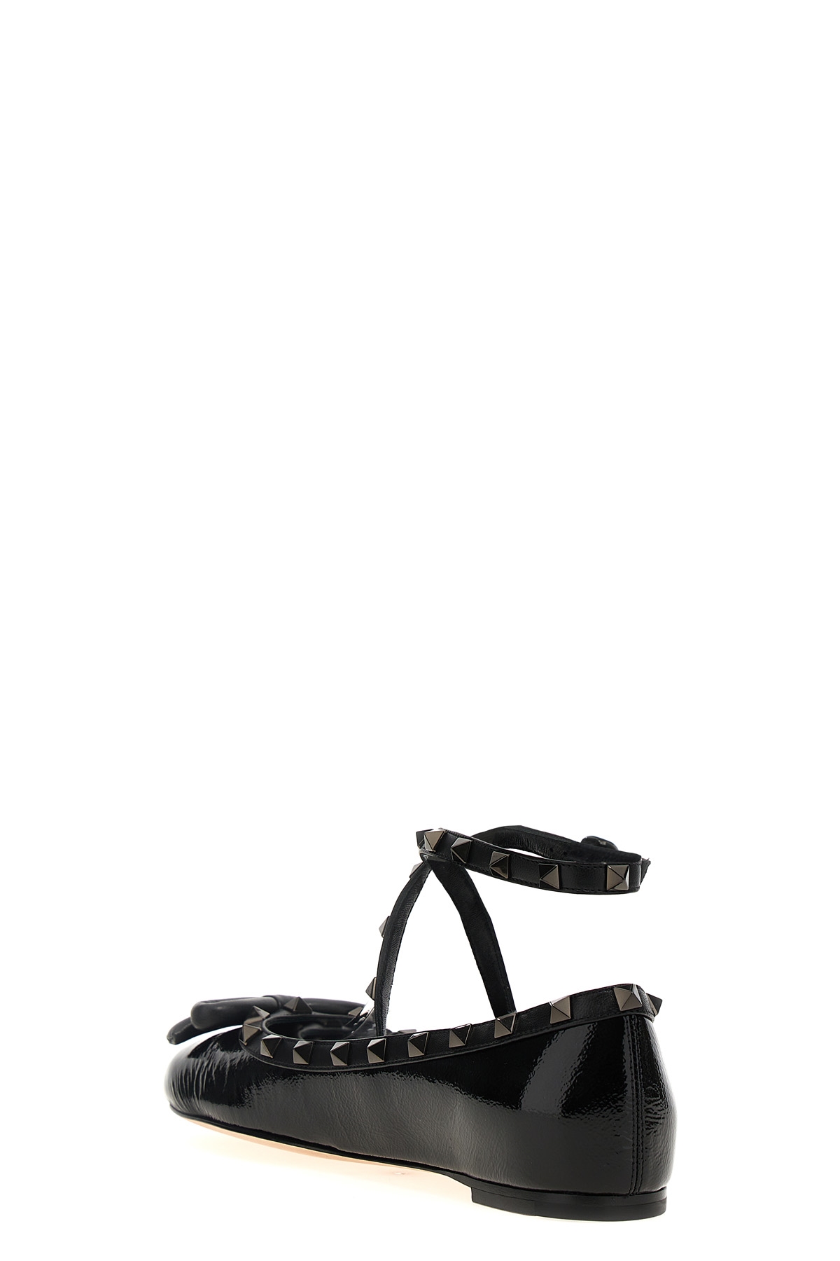 'Rockstud' ballet flats in shiny leather and leather, front bow application, studs, ankle strap.