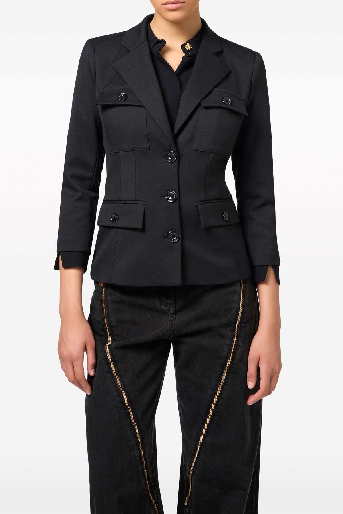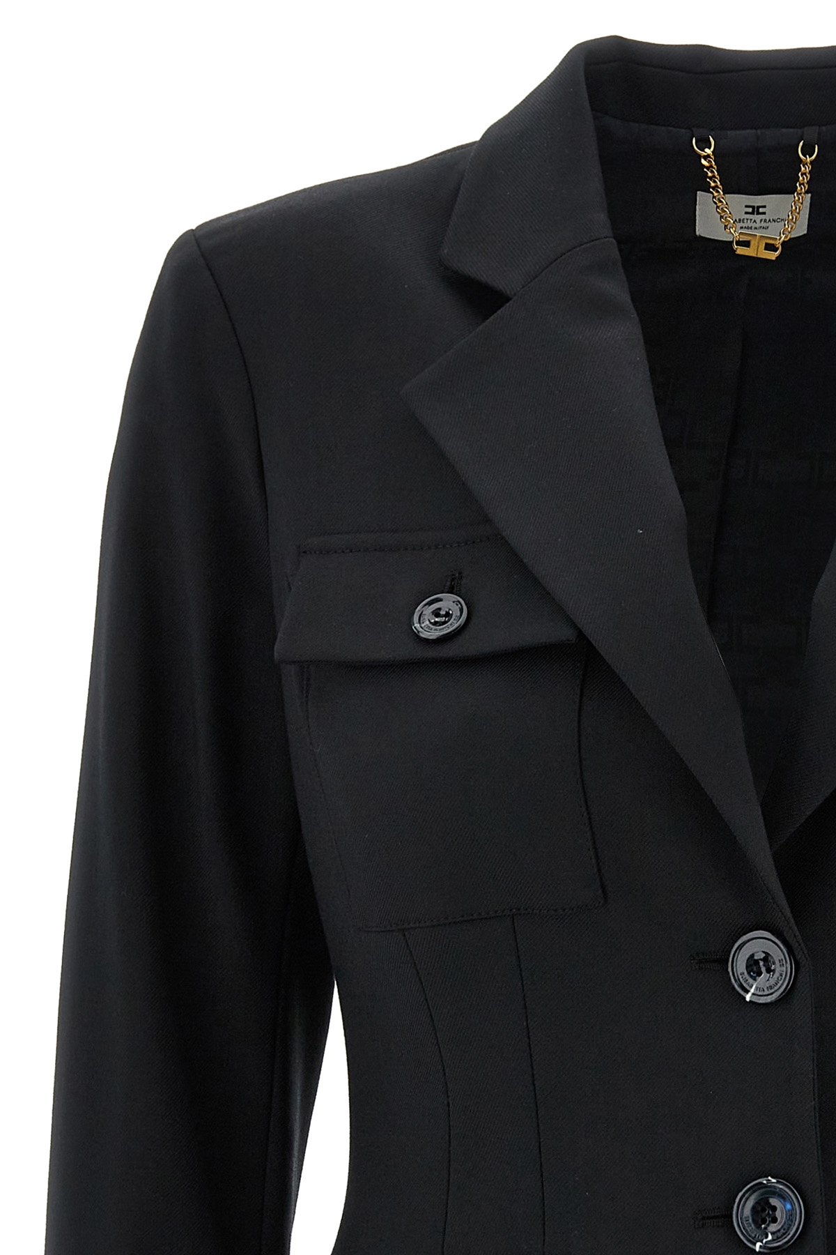 Single-breasted blazer in wool blend, pockets, button closure, long sleeves.