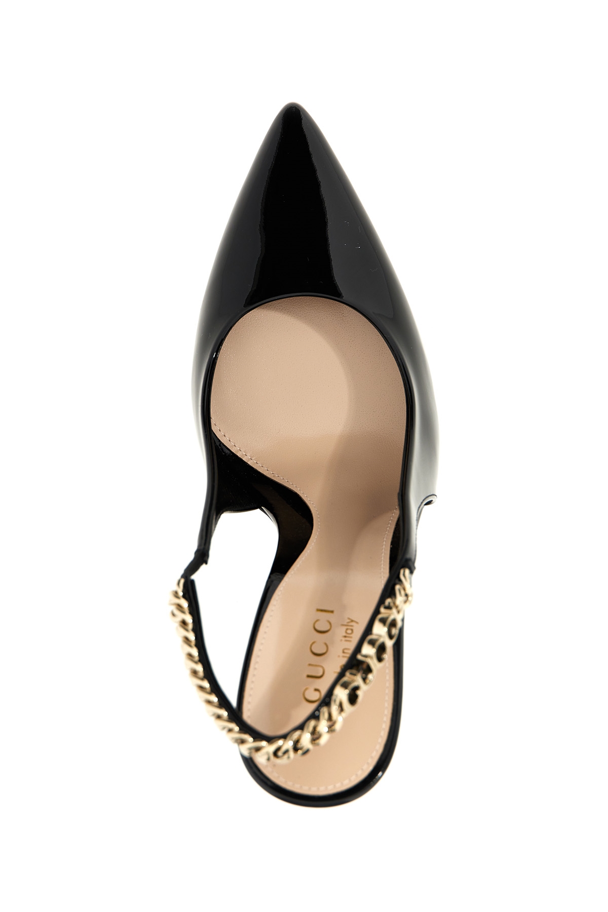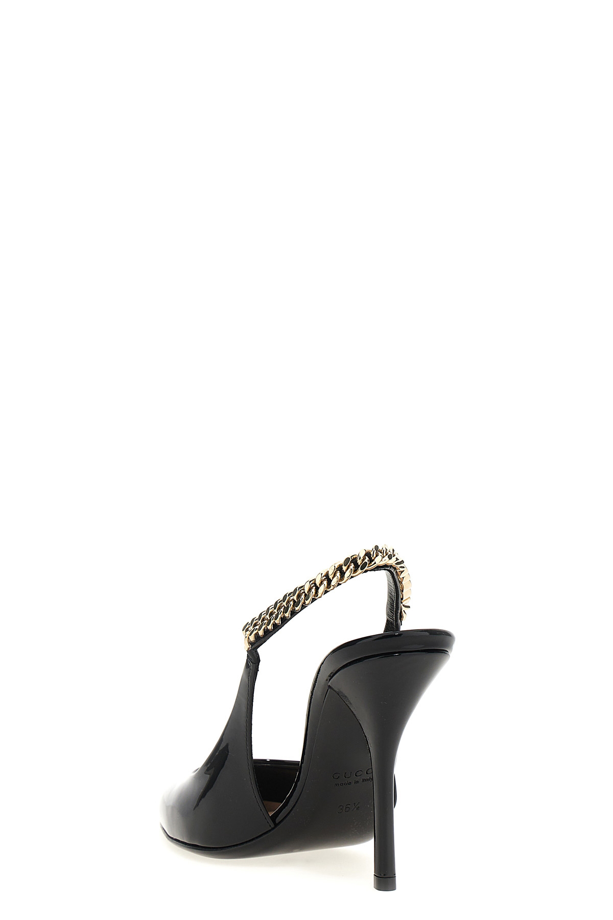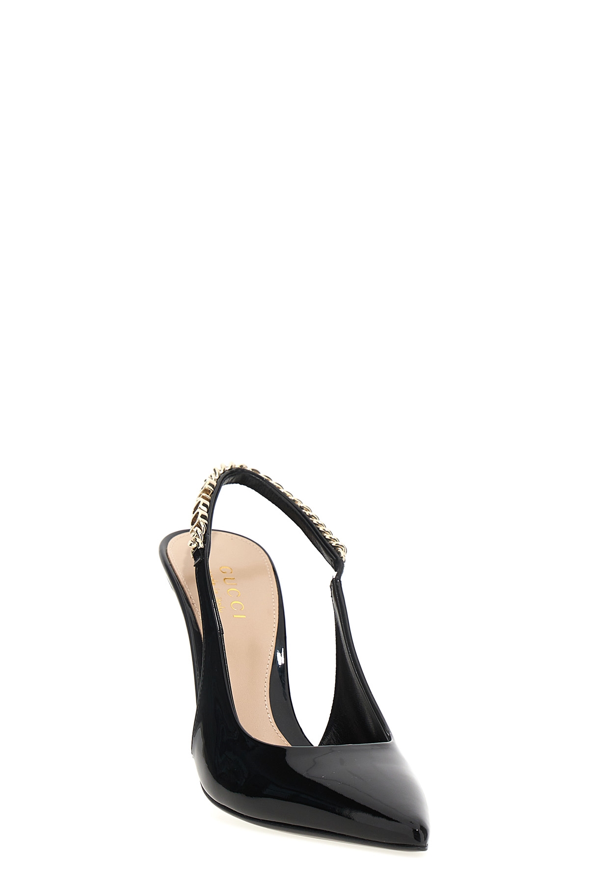 'Signoria' patent leather slingbacks with strap with metal logo detail, stiletto heels.