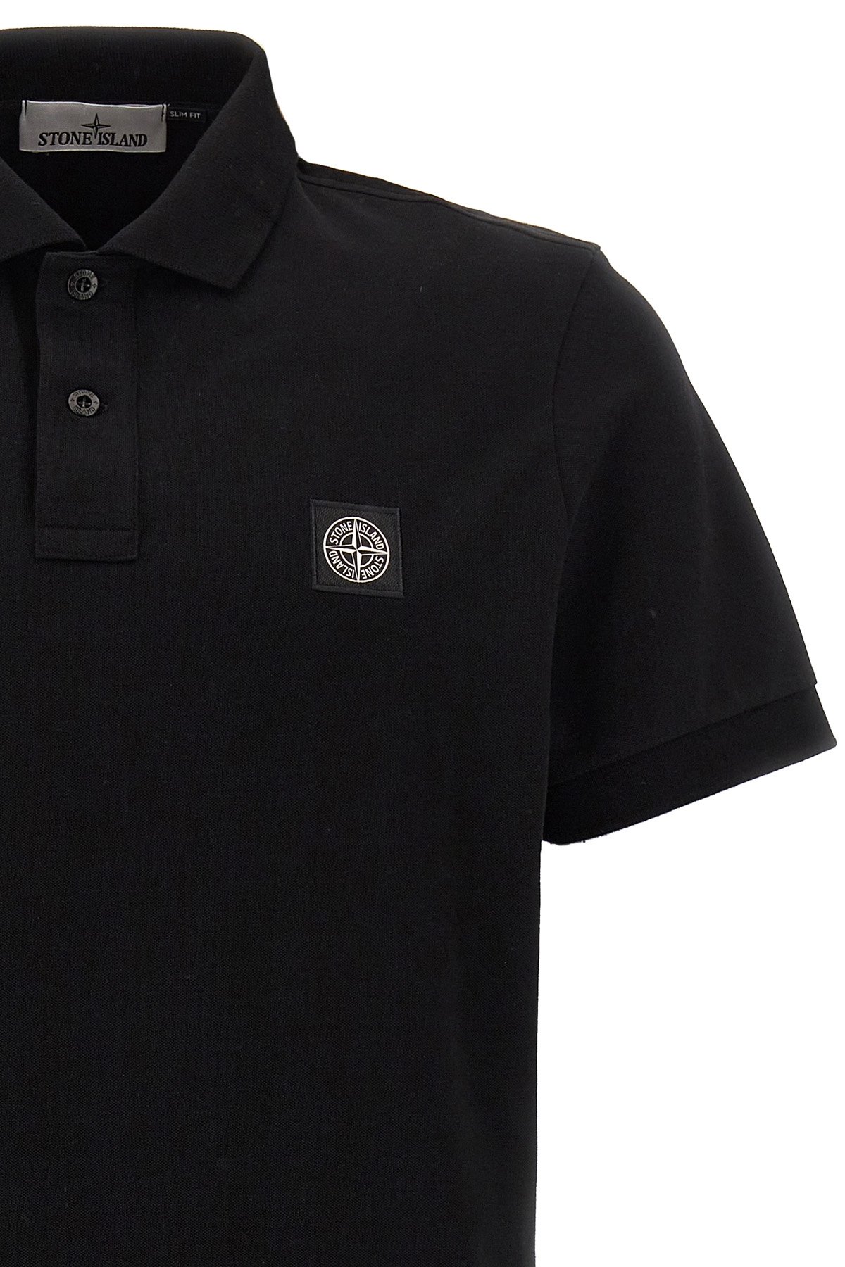 Pique cotton polo shirt with front logo patch and short sleeves.