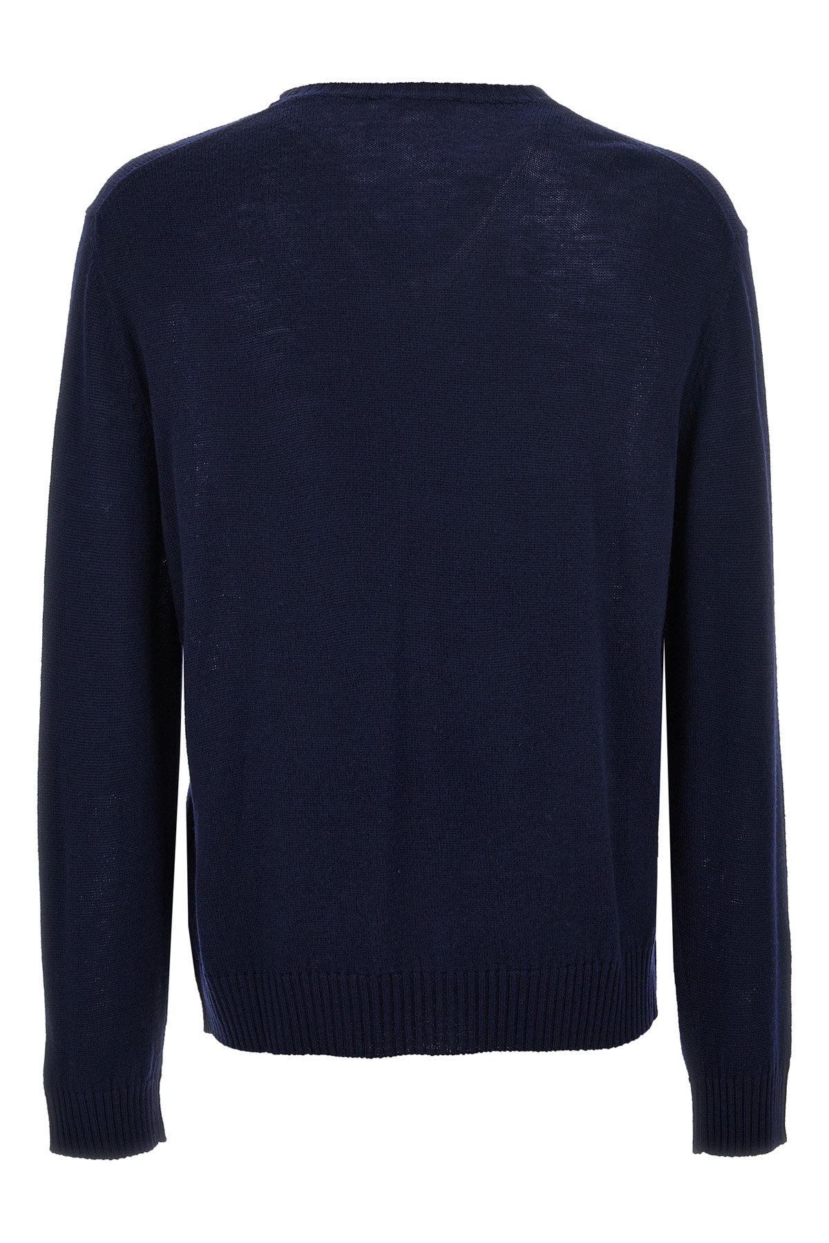 Wool sweater with embroidered logo on the hem, crewneck, and long sleeves.