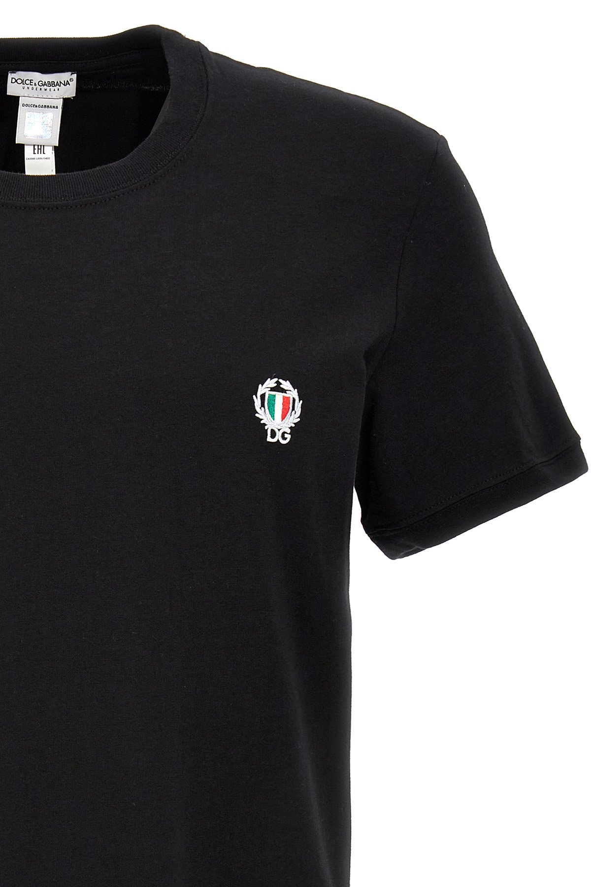 Cotton, crewneck T-shirt with embroidered logo on the front and short sleeves.