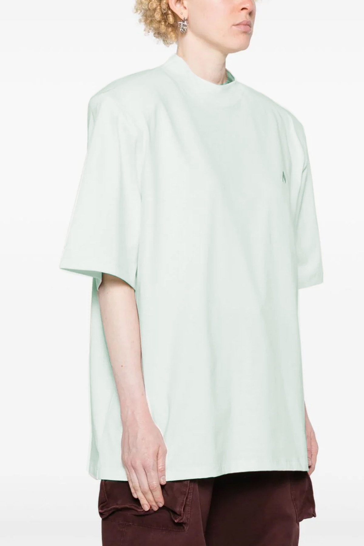 'Kilie' cotton T-shirt with front logo, high neck, short sleeves, padded shoulders.