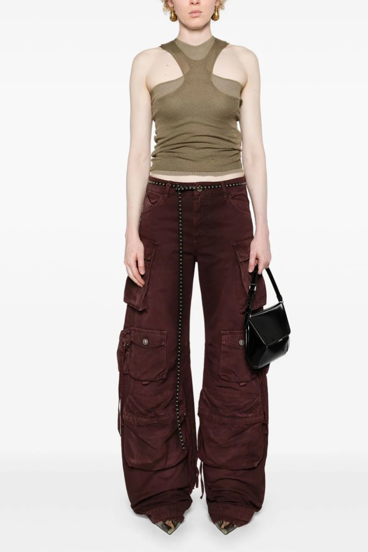 'Fern' cargo jeans in cotton denim with pockets, zip and button closure, leather logo tag, adjustable ankle strap detail.