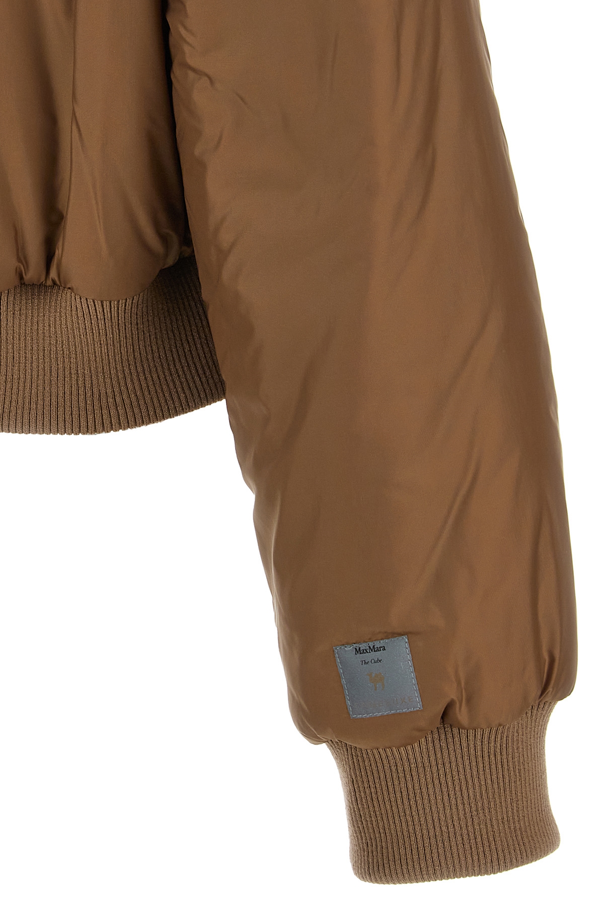 Short 'Greenbi' bomber jacket, slightly padded, in windproof fabric with front button closure, long sleeves with knitted cuffs.