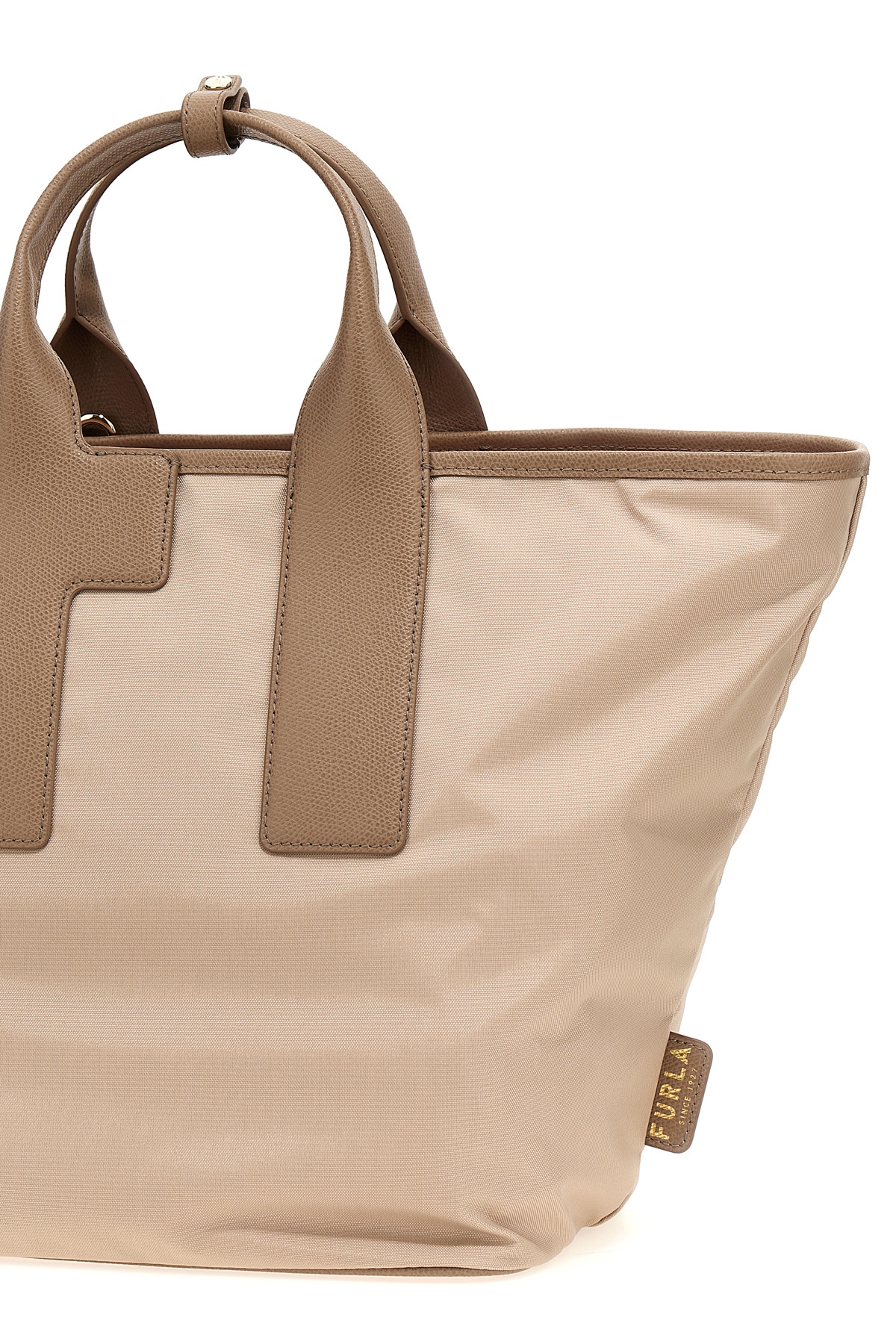 'Piuma L' nylon shopping bag with leather details, double handle, zip closure.
