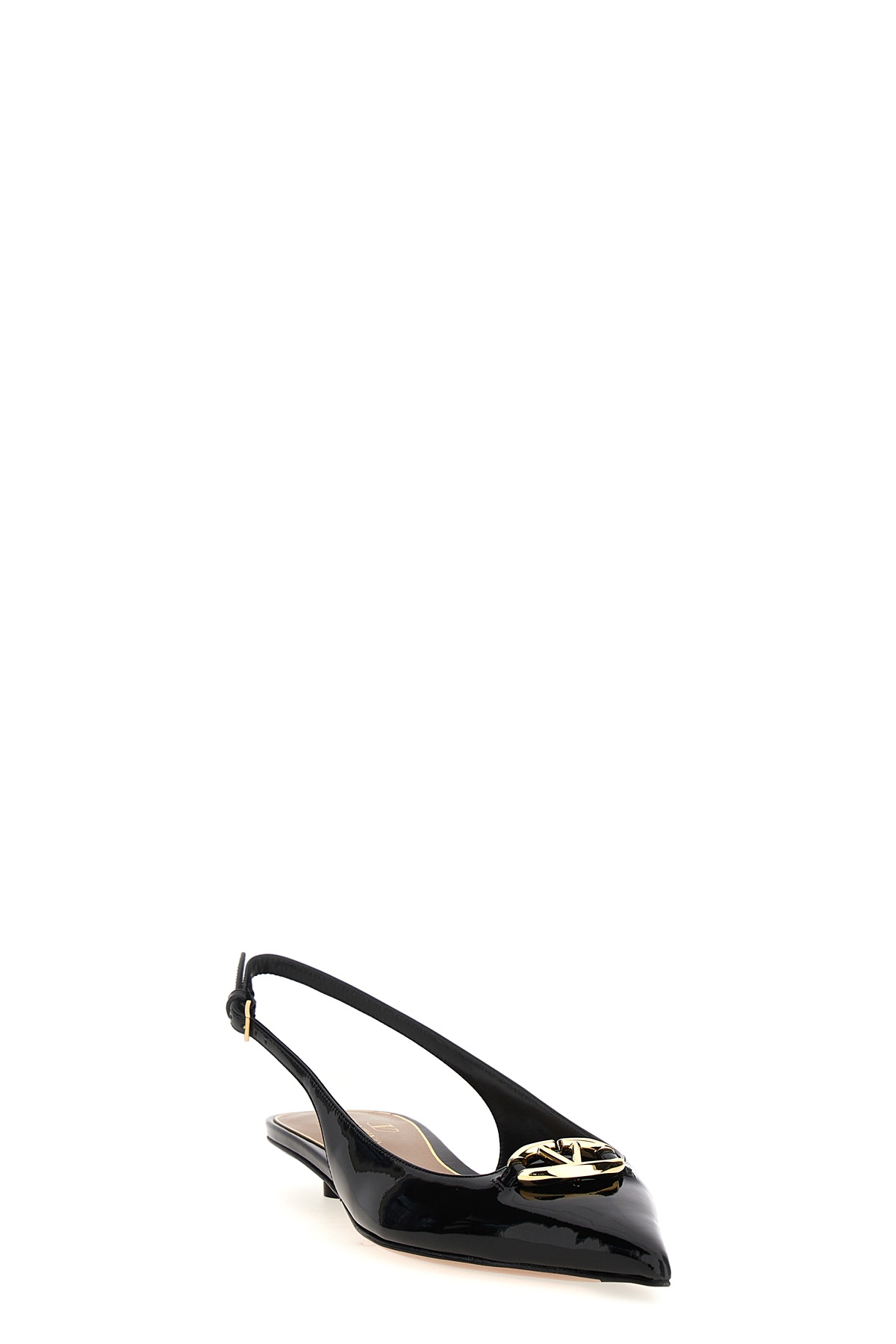 'Vlogo Moon' leather slingbacks with gold front logo, spool heel, adjustable strap.